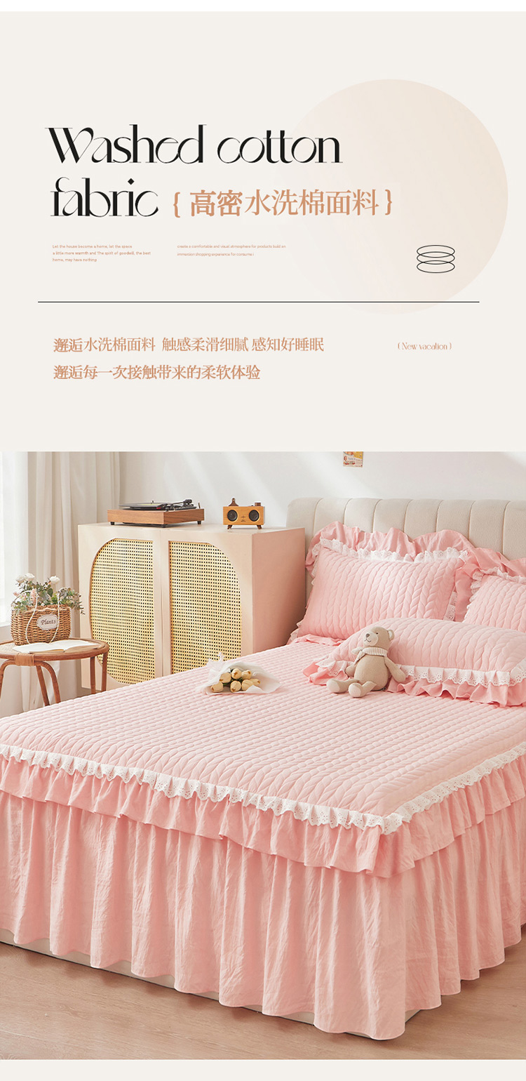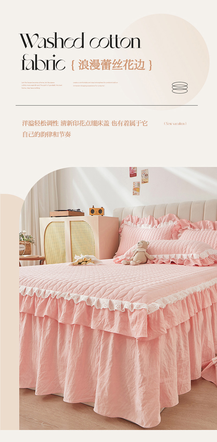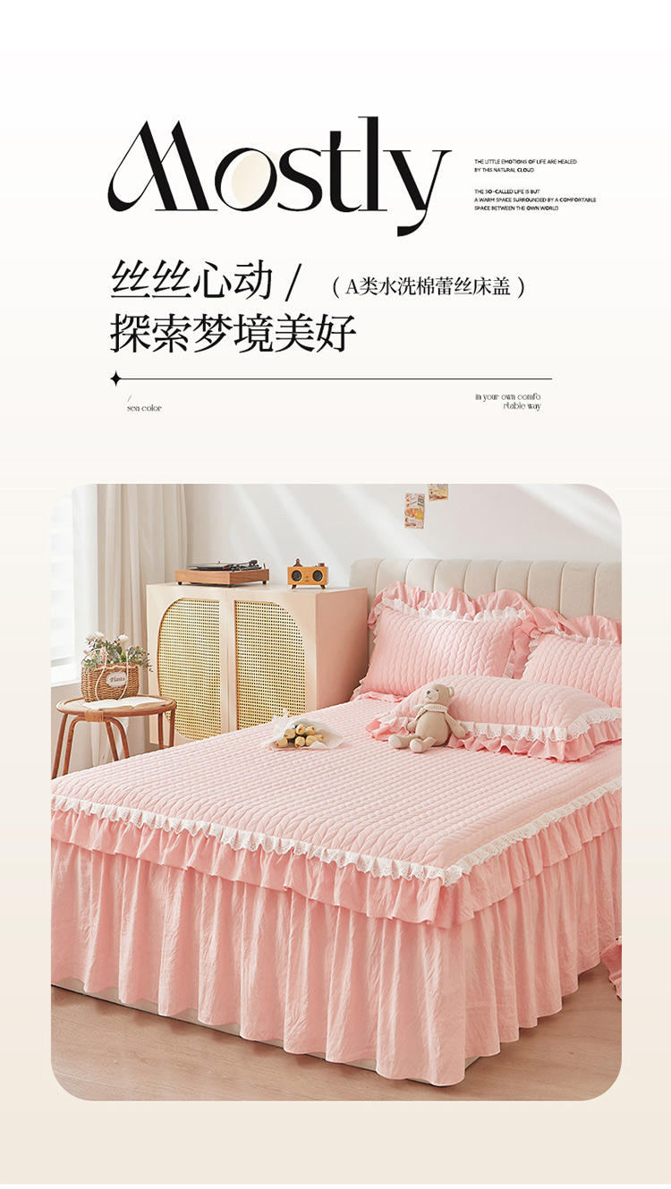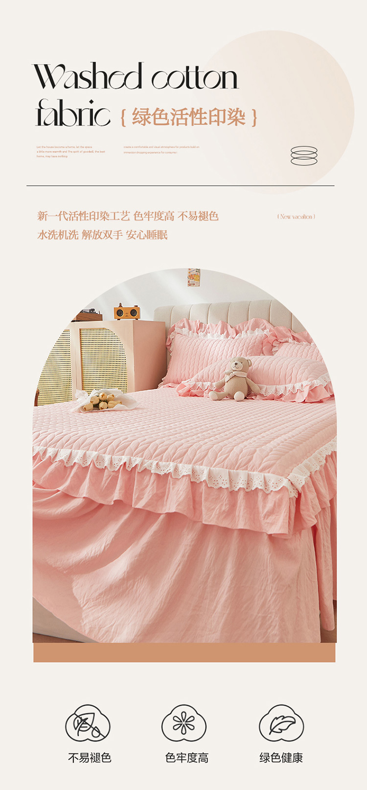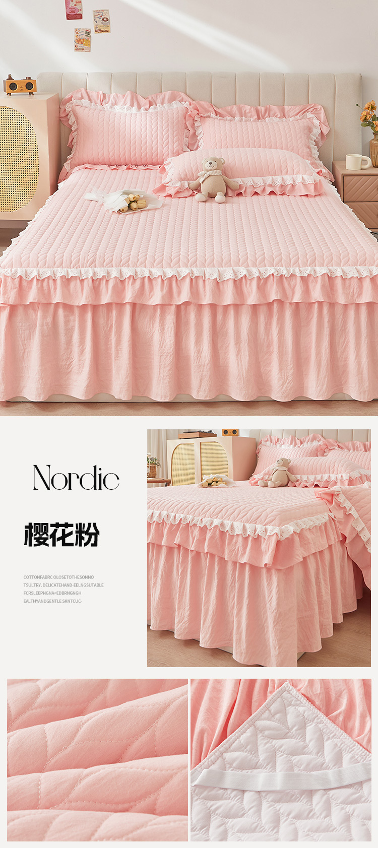 商品名称:2025ins秘密花园镂空泡泡玛卡龙色系水洗棉加厚床裙 樱花粉