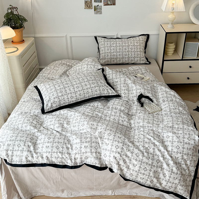 (总)昔可 2024新款单层黑边复古花古典儒雅四件套