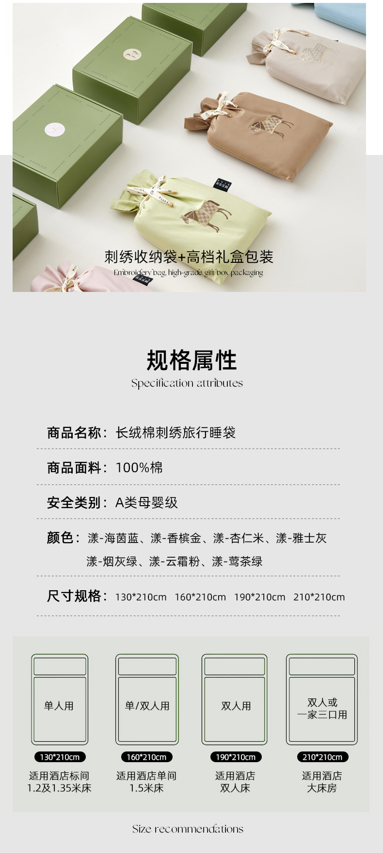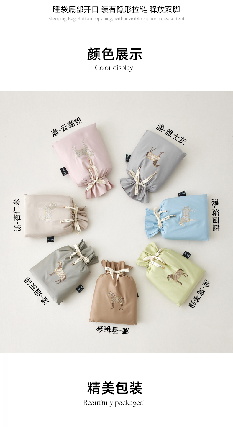 商品名称:千朵森 2024新款A类长绒棉刺绣睡袋 漾-香槟金