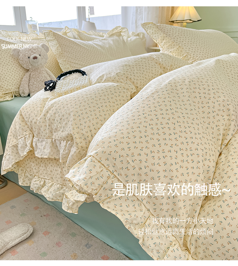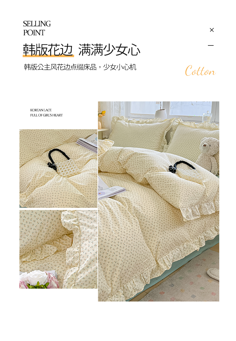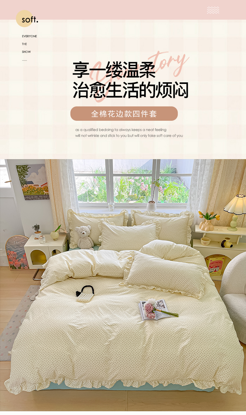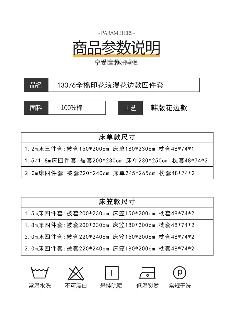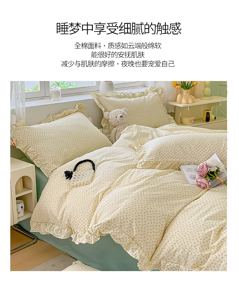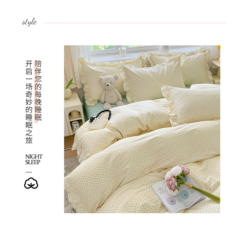 当前位置: 91家纺网 > 商品网购 > 床品套件 > 四件套 > 全棉普通四件套 > 柠馨 2024新款全棉印花浪漫花边款四件套 淡若烟云
