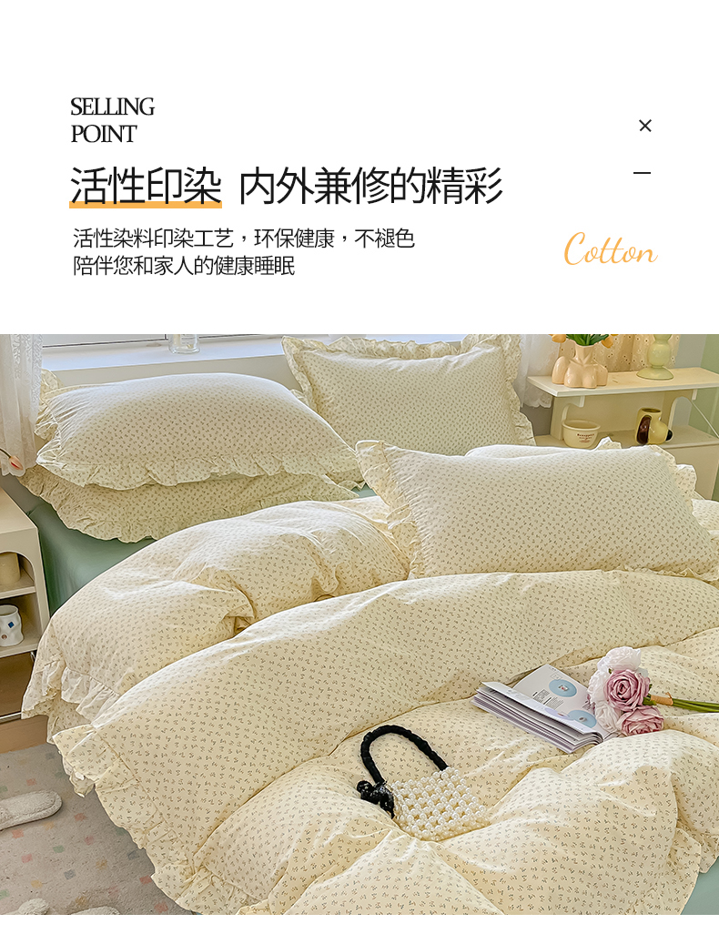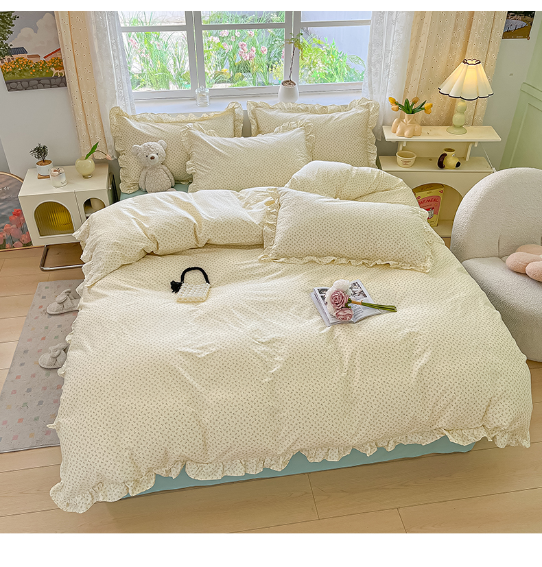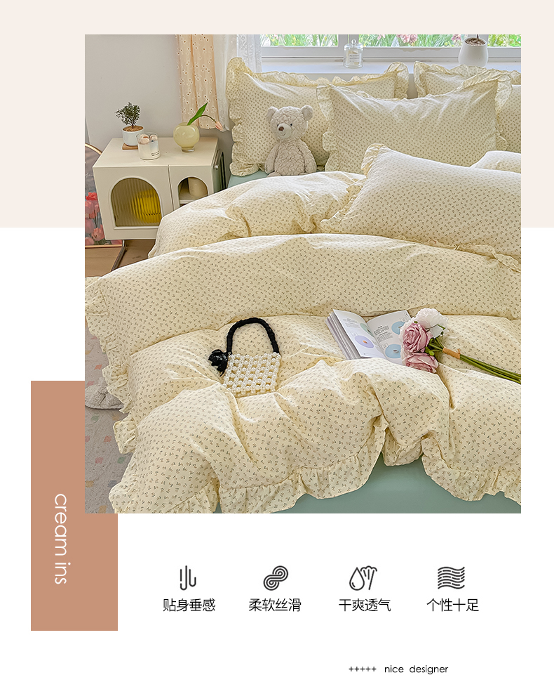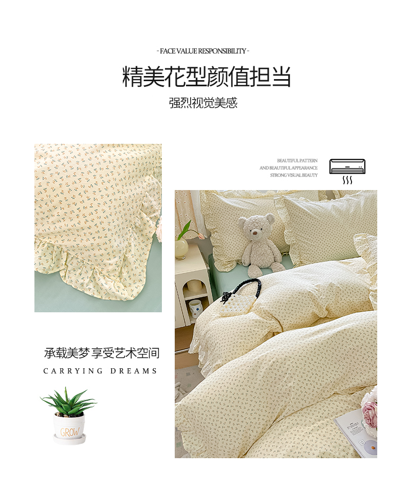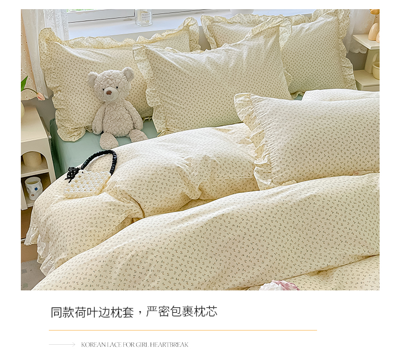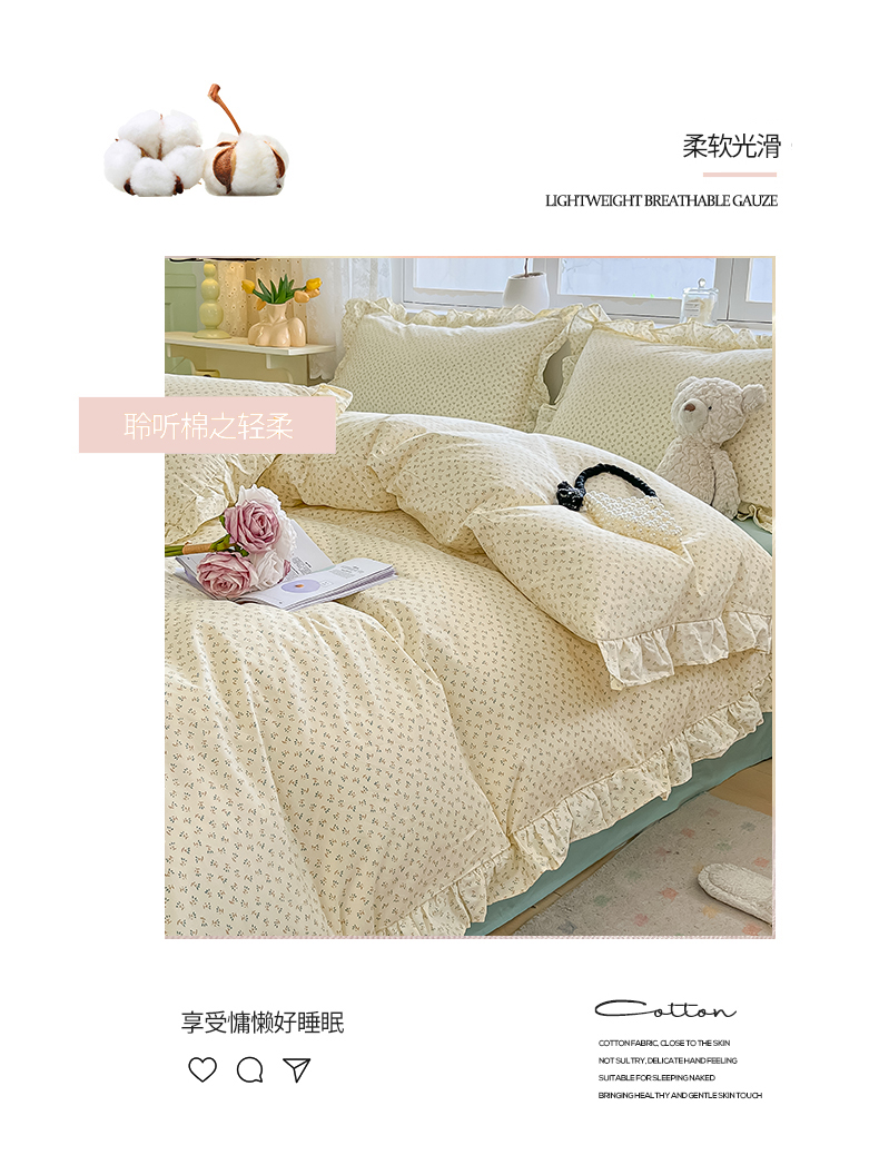 当前位置: 91家纺网 > 商品网购 > 床品套件 > 四件套 > 全棉普通四件套 > 柠馨 2024新款全棉印花浪漫花边款四件套 淡若烟云