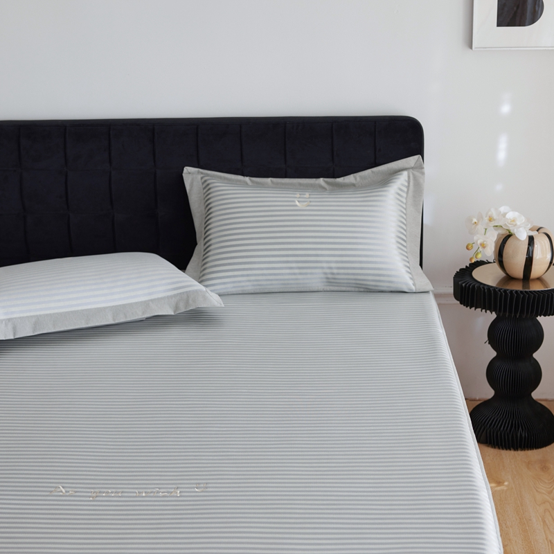 时年 2022新款全棉40支13372ins条纹款四件套 复古奶绿,复古奶绿
