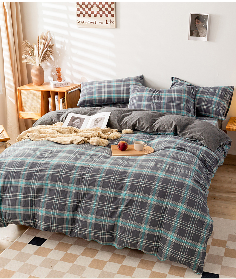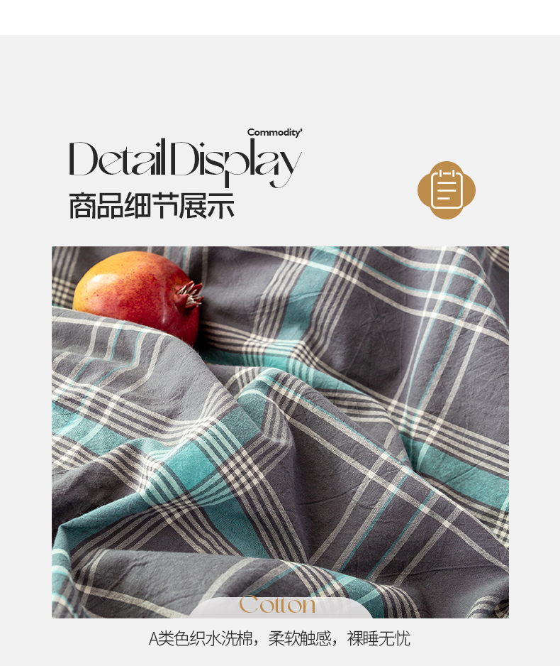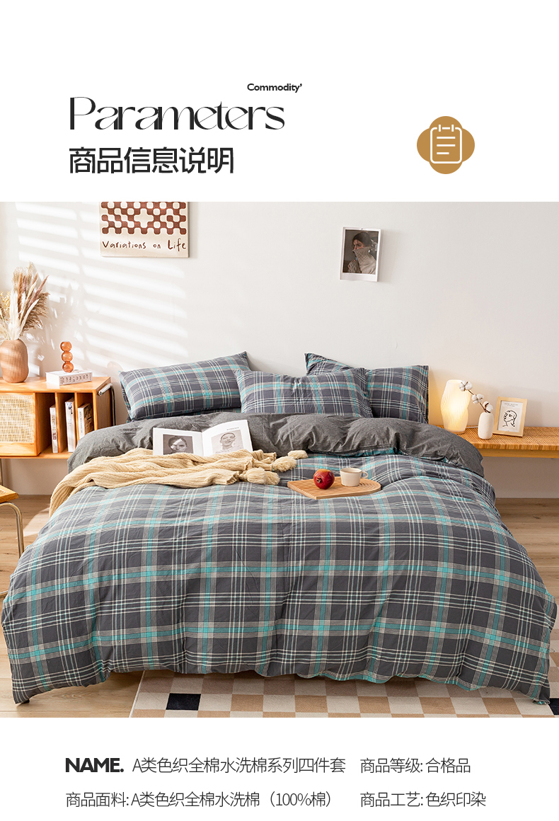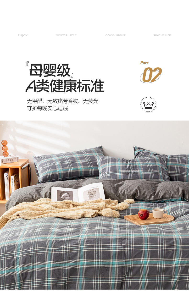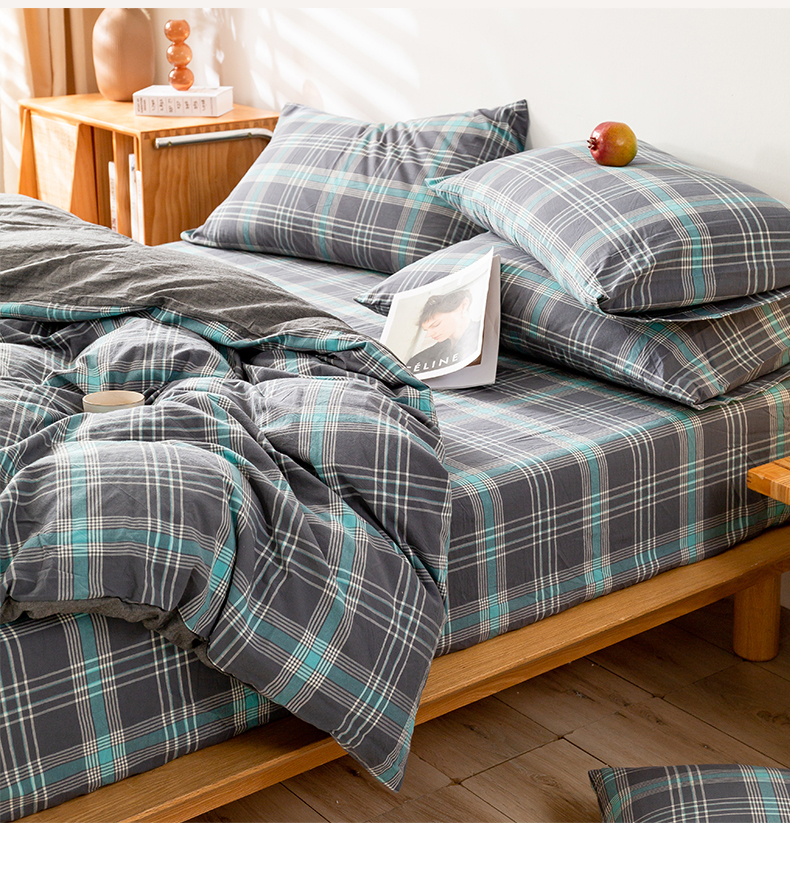 当前位置: 91家纺网 > 商品网购 > 床品套件 > 四件套 > 水洗棉四件套 > 九沐良品 新款A类色织水洗棉四件套 灰绿格