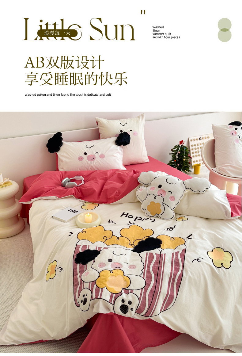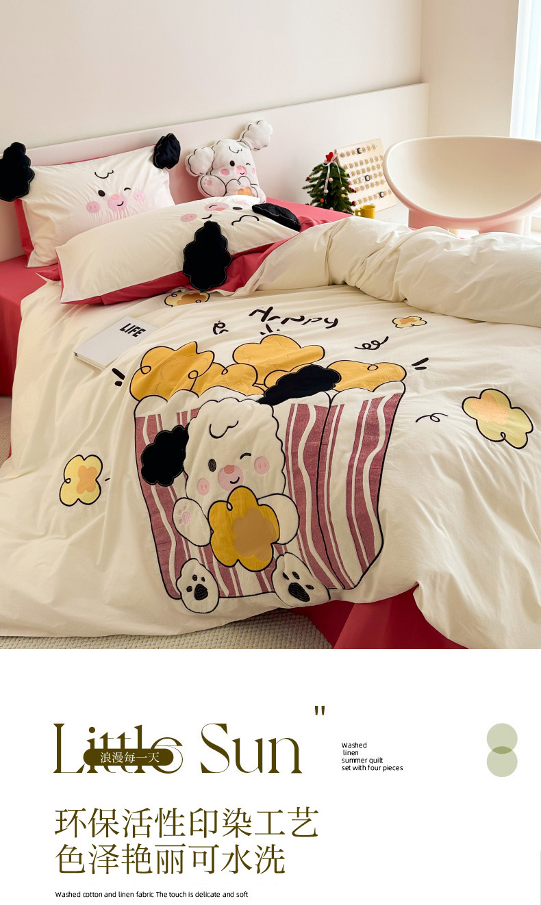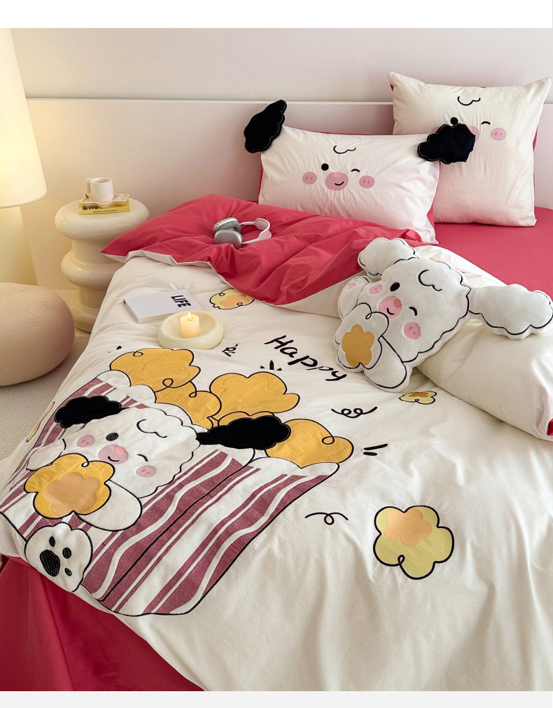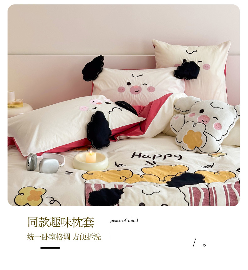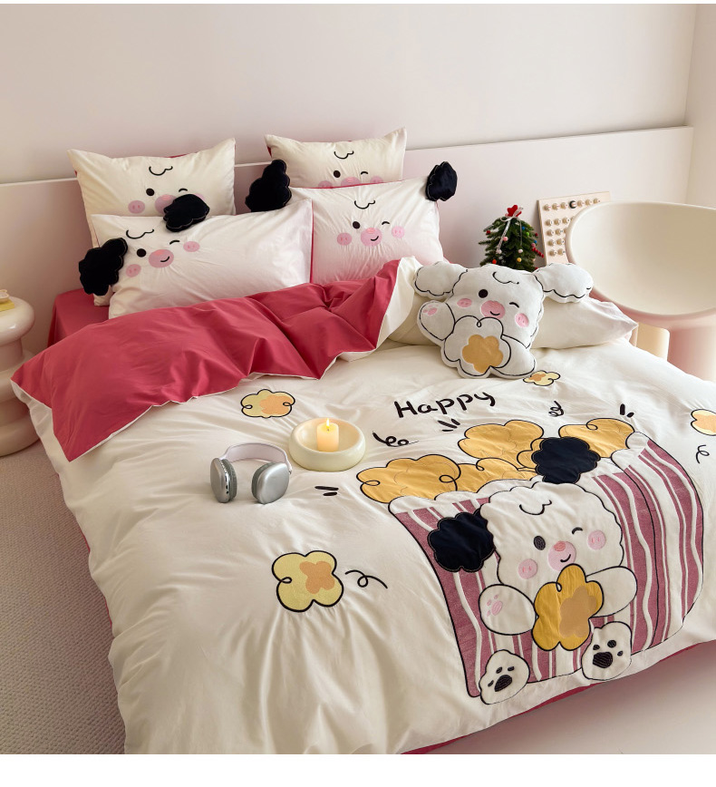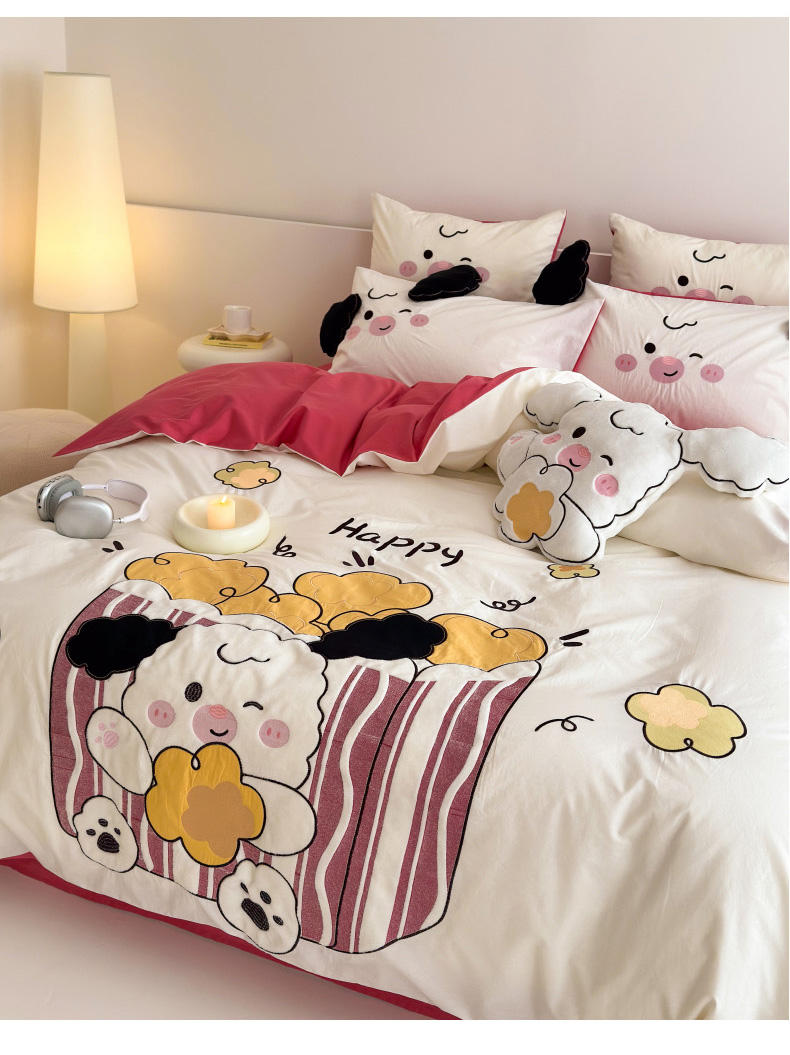 当前位置: 91家纺网 > 商品网购 > 床品套件 > 四件套 > 全棉普通四件套 > 柠馨 2024新款卡通贴布绣加厚定织全棉水洗棉四件套 爆米花小狗(送抱枕)