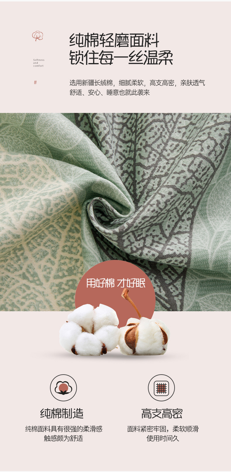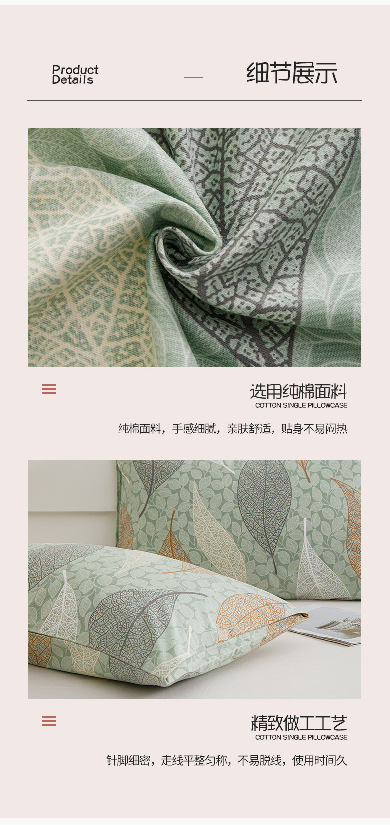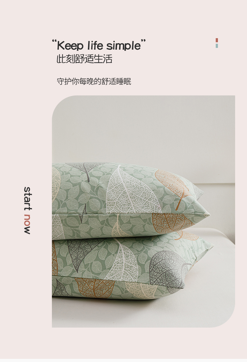 商品名称:宝时兰 2024新款纯色单枕套全棉加厚生态喷气磨毛纯棉口袋枕套 印花-庭叶