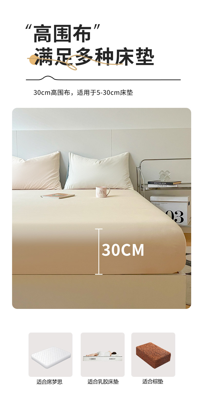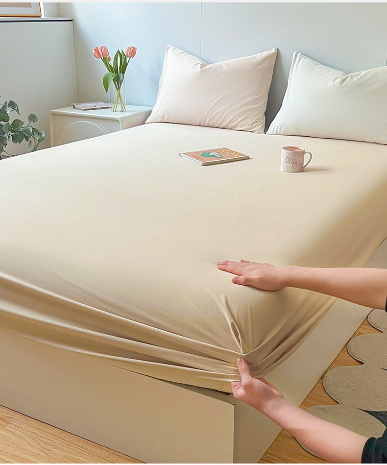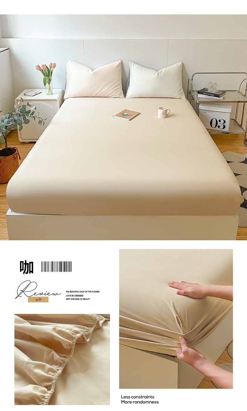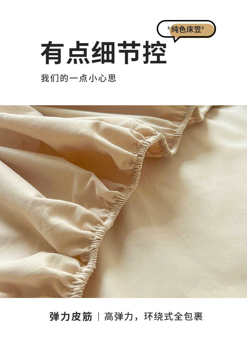 米粒家纺 2024新款纯色磨毛床笠 咖