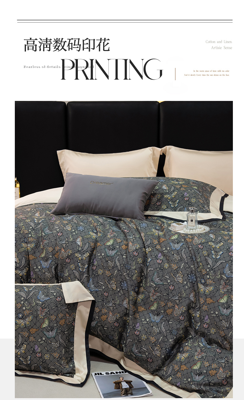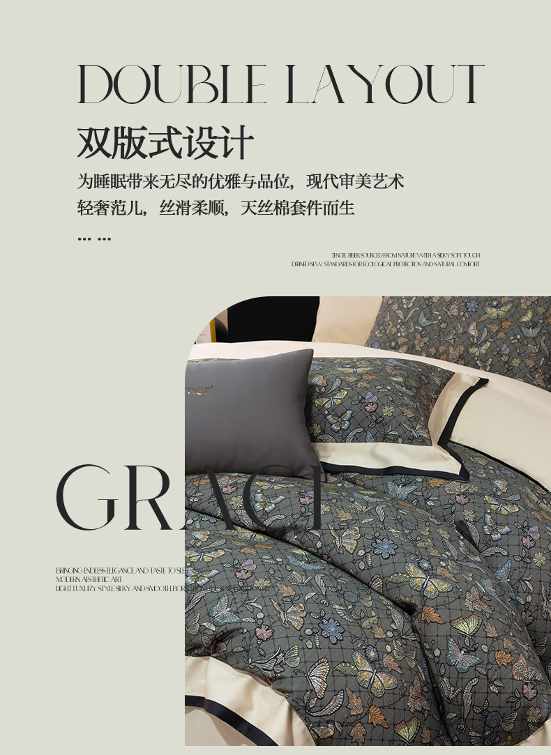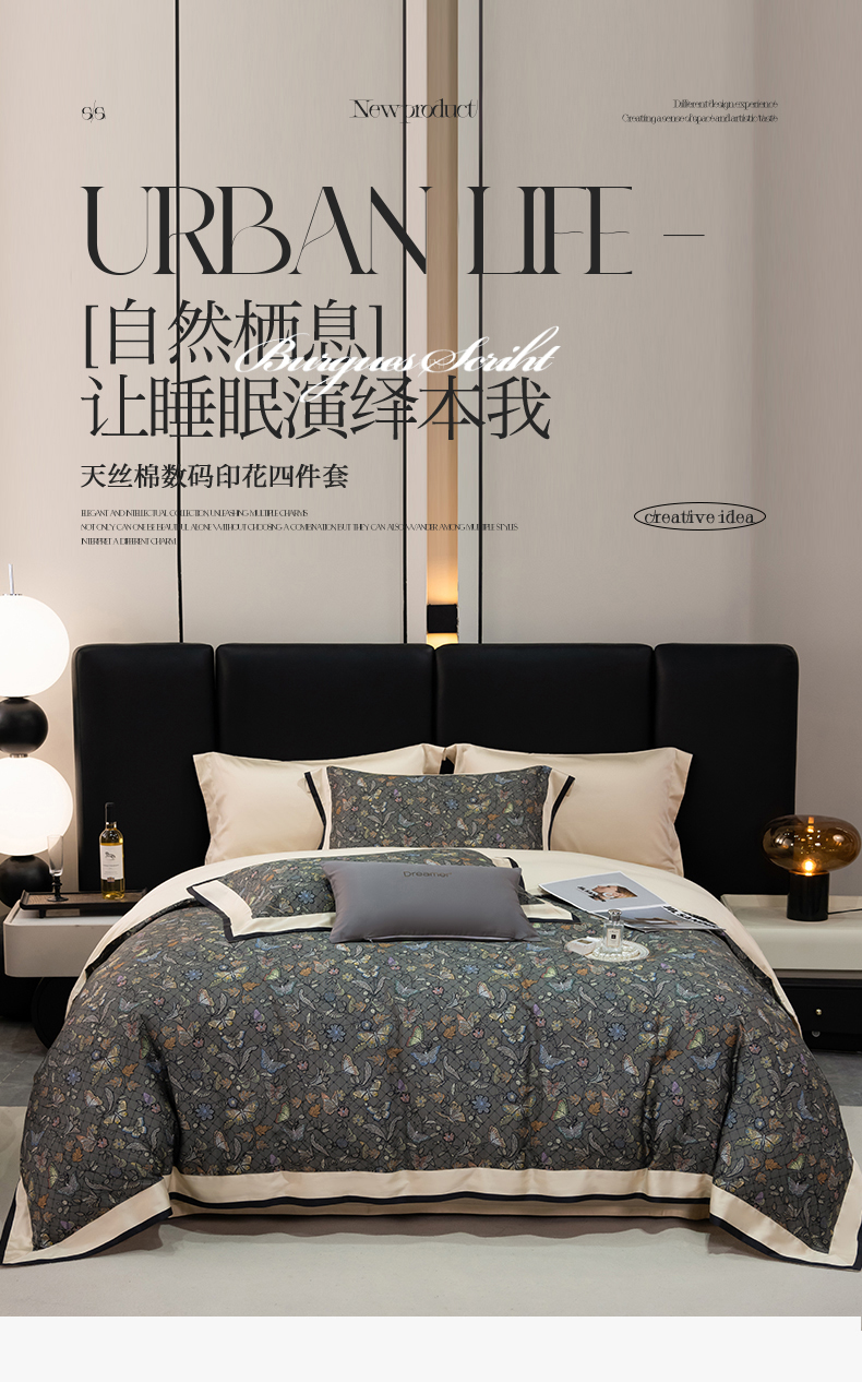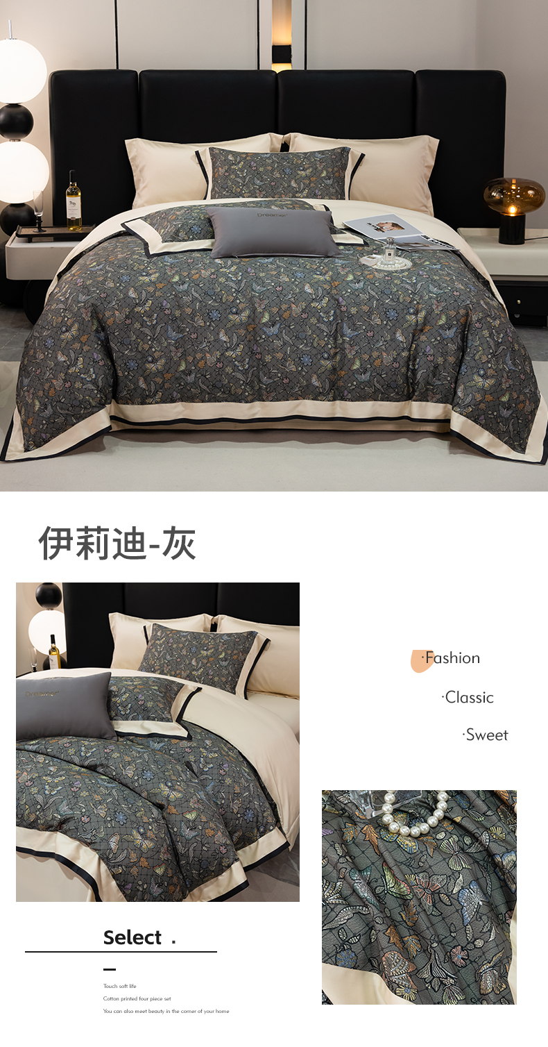 商品名称:瑞米家居 2024新款天丝棉数码印花四件套 伊莉迪-灰