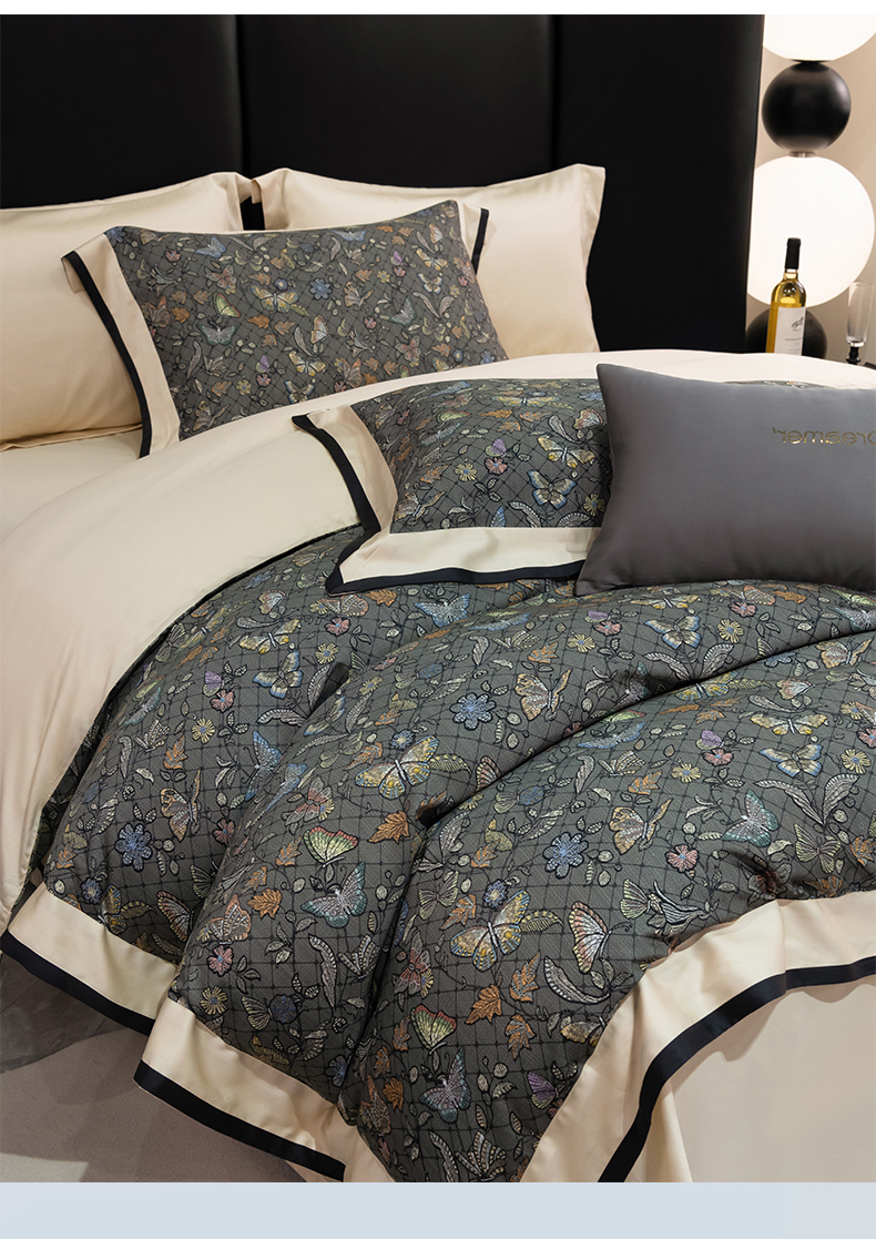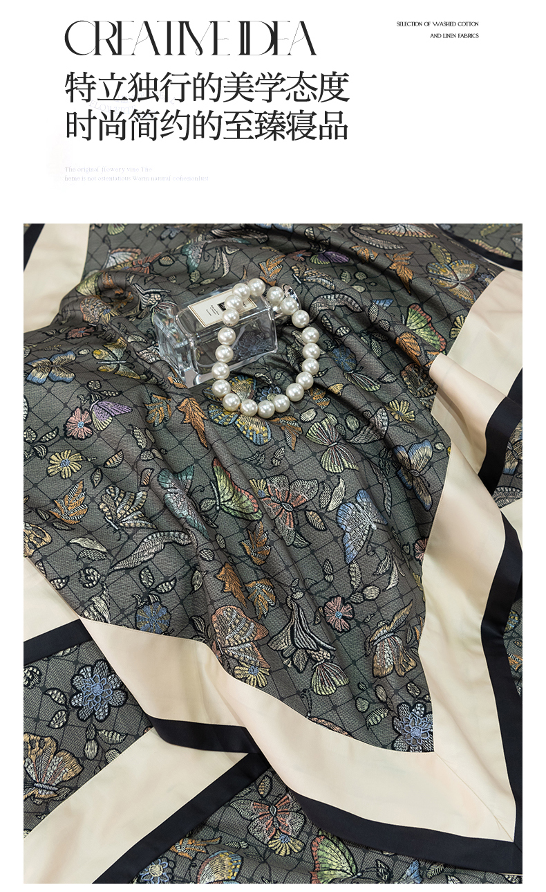 (总)瑞米家居 2025新款A类棉麻提花花边款四件套-蝶恋花,蝶恋花-粉色,蝶恋花-红咖,蝶恋花-芥末绿,蝶恋花-米色,蝶恋花-中灰