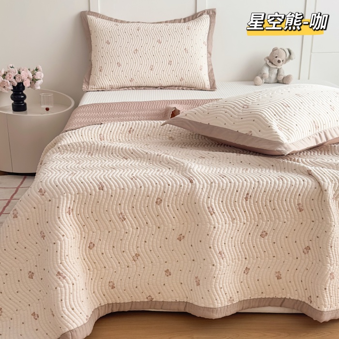 (总)双层纱床盖三件套 新款全棉纯棉花边防滑夹棉床单单件四季通用,绿茵熊,泡芙小花,安雅粉,蓝草莓,夏栀,花枝兔子,顽皮熊,曼陀罗,茶花蓝,蔓莎-蓝,蔓莎-粉,小柴犬