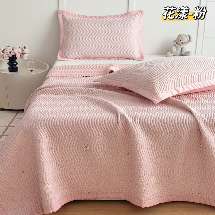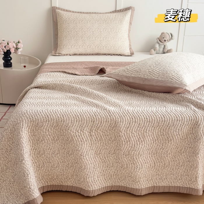 (总)纯棉水洗棉床盖 花边60S双面全棉砂洗床盖三件套绗缝夹棉床单,白色,粉色,绿色,咖色,本麻