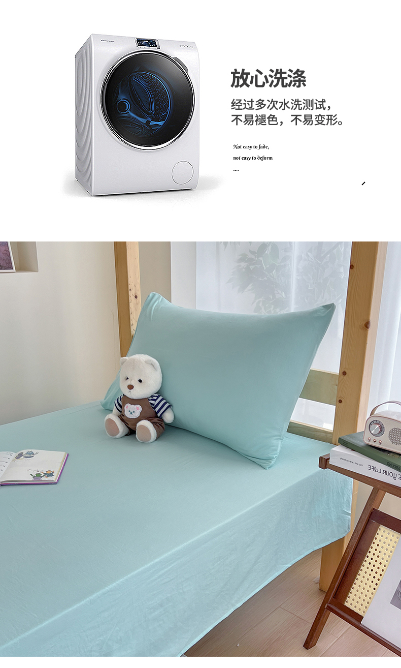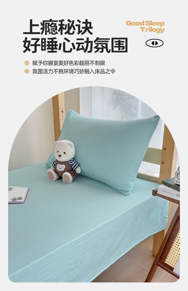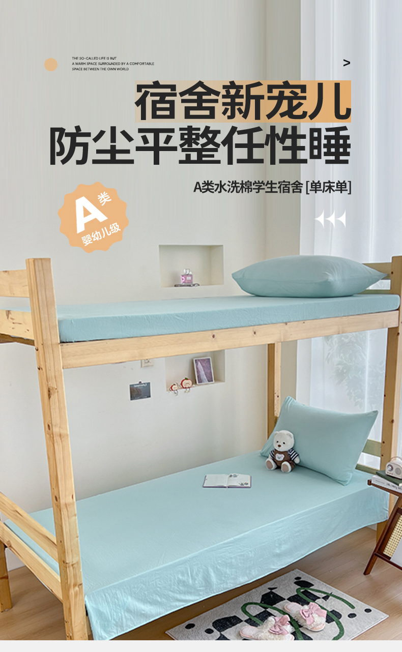 • 91家纺网 家纺一手货源 找家纺 多品 2024新款水洗棉皱皱纱学生宿舍单床单 天空蓝