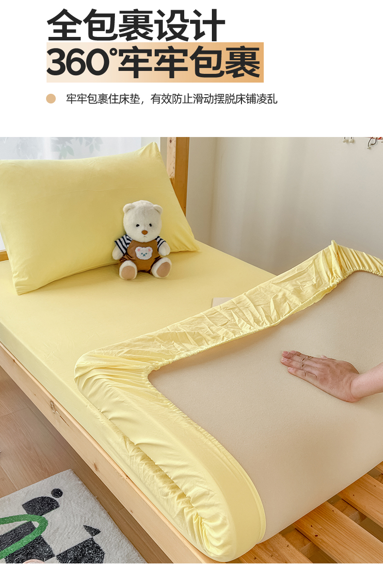 • 91家纺网 家纺一手货源 找家纺 多品 2024新款水洗棉皱皱纱学生宿舍单床笠 奶黄
