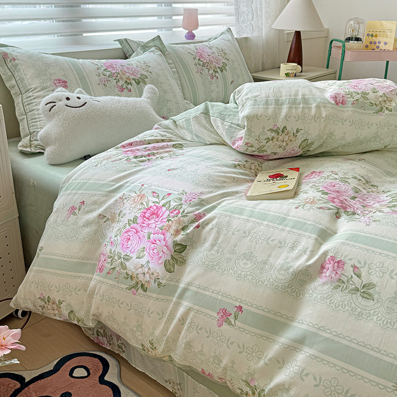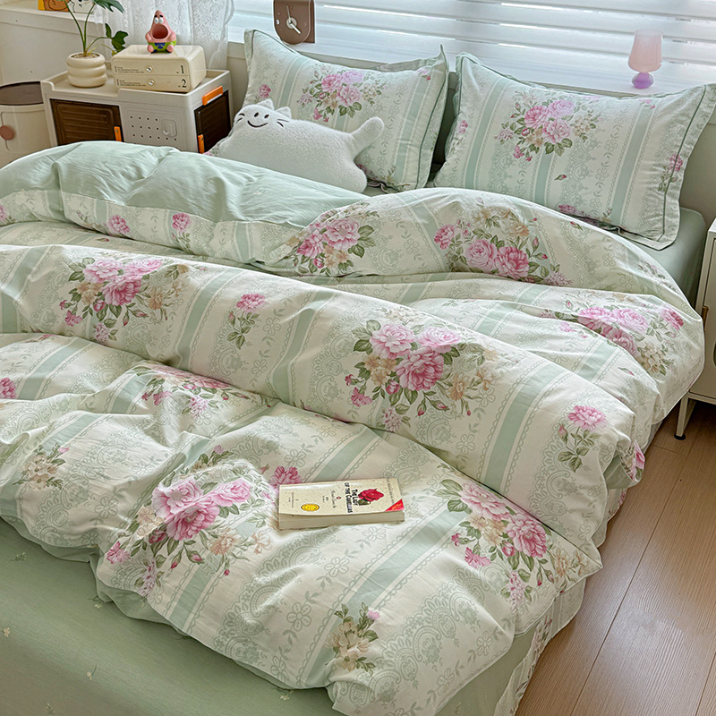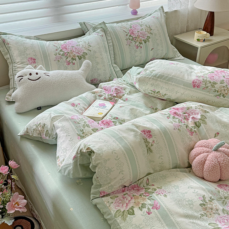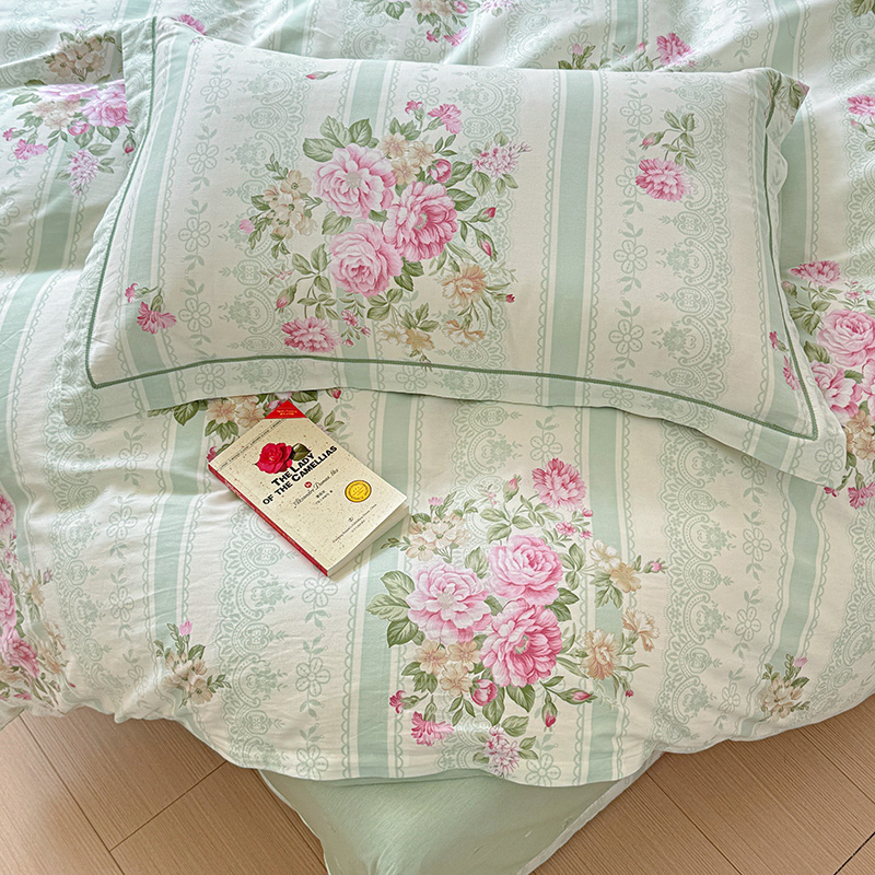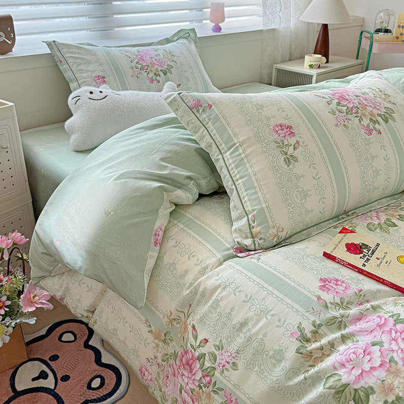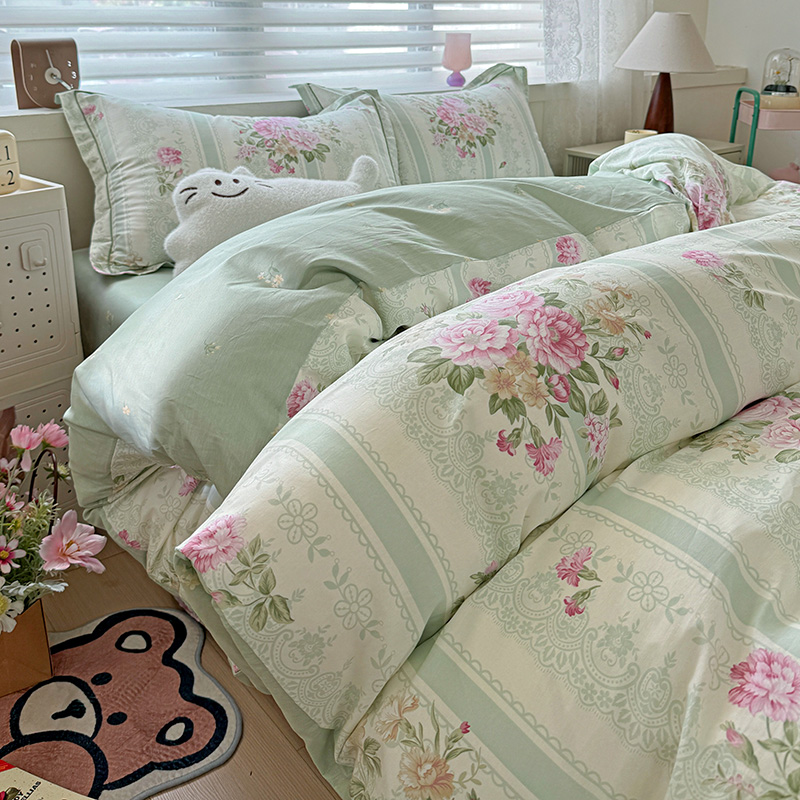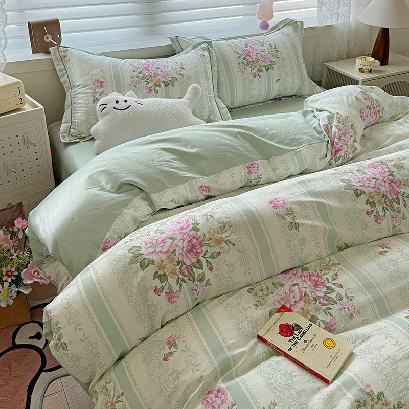 乐童 2024新款直播爆款13070纯棉印花吊边款一字绣四件套第八波沉香花影