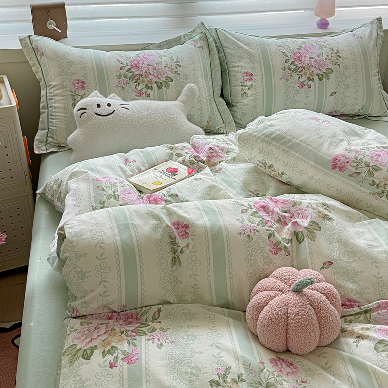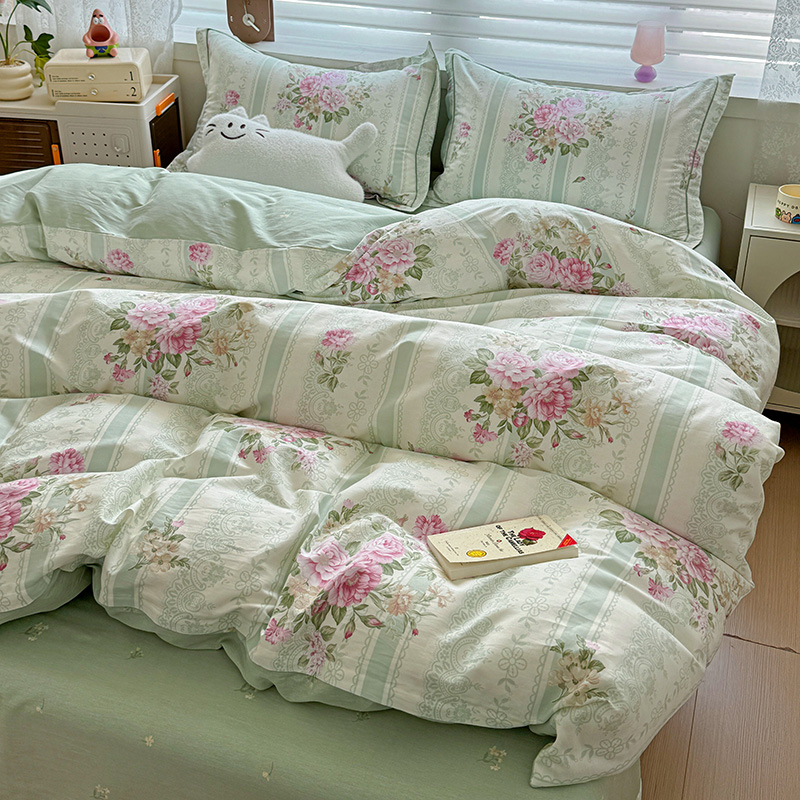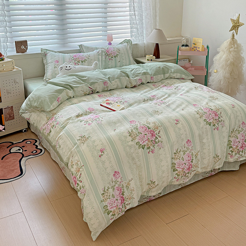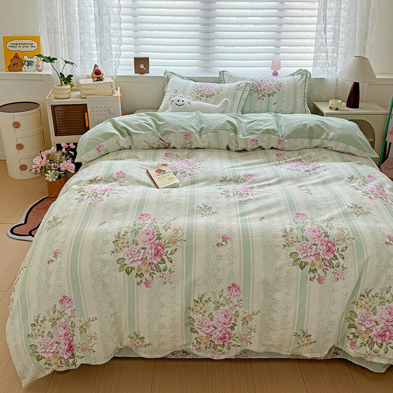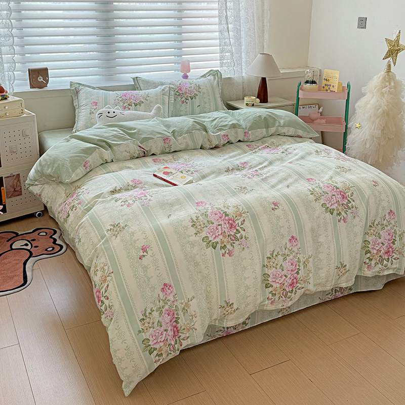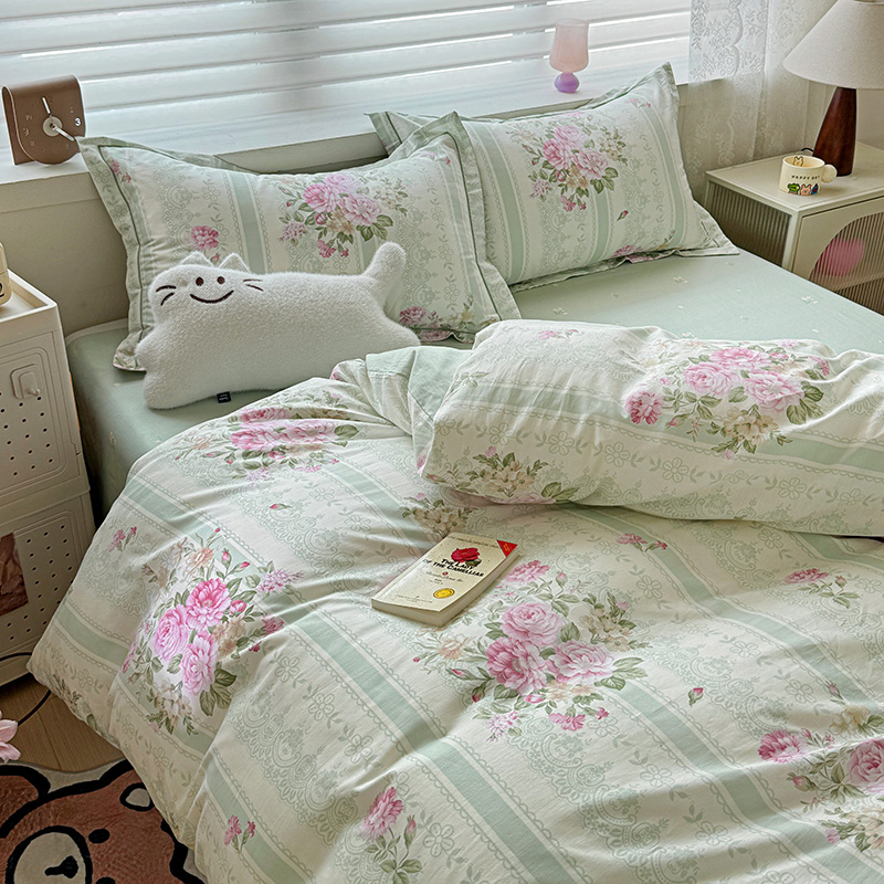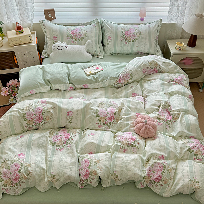 乐童 2024新款直播爆款13070纯棉印花吊边款一字绣四件套第八波沉香花影