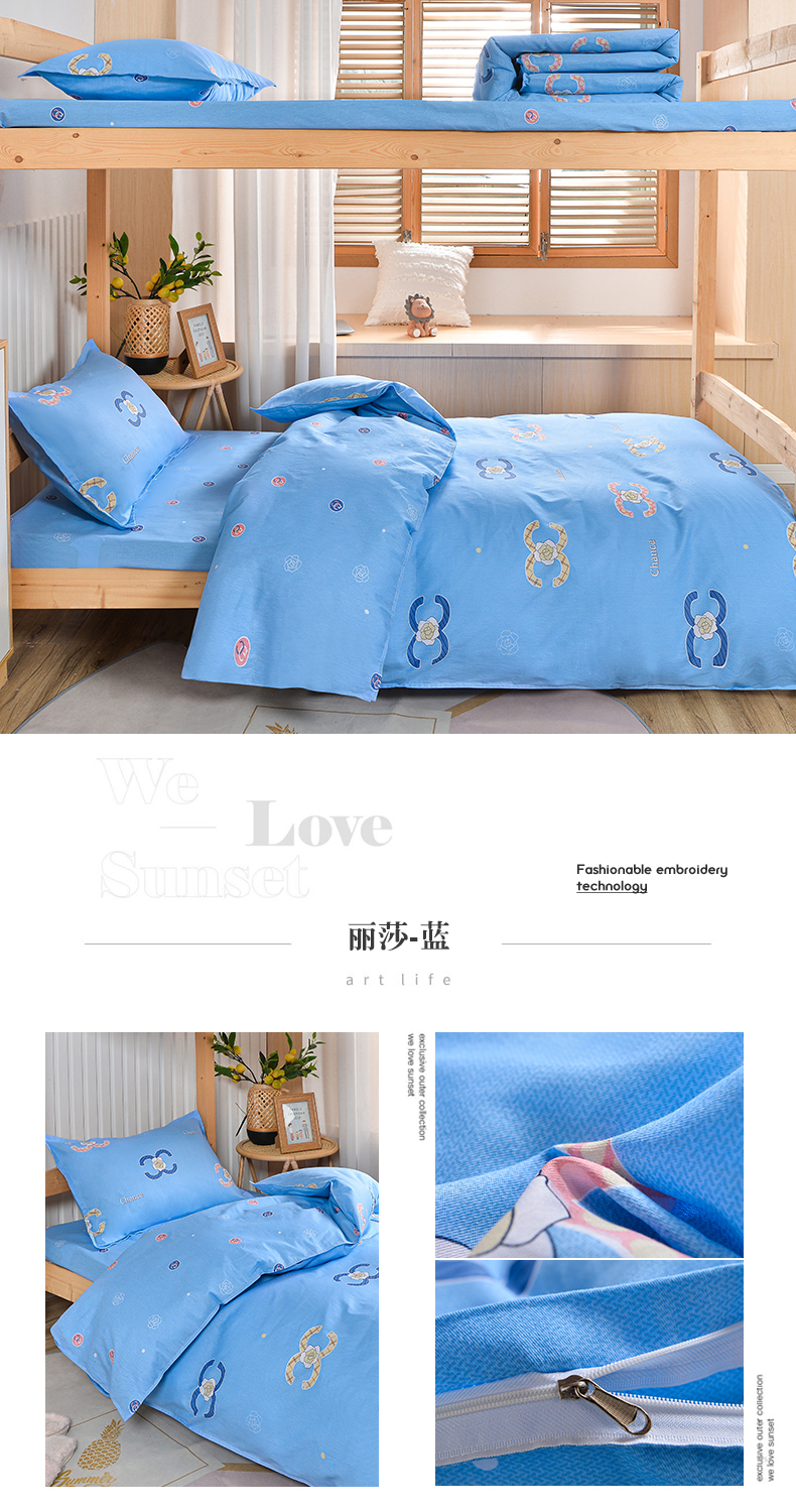 2026新款宿舍上下铺12868纯棉三件套 丽莎-蓝
