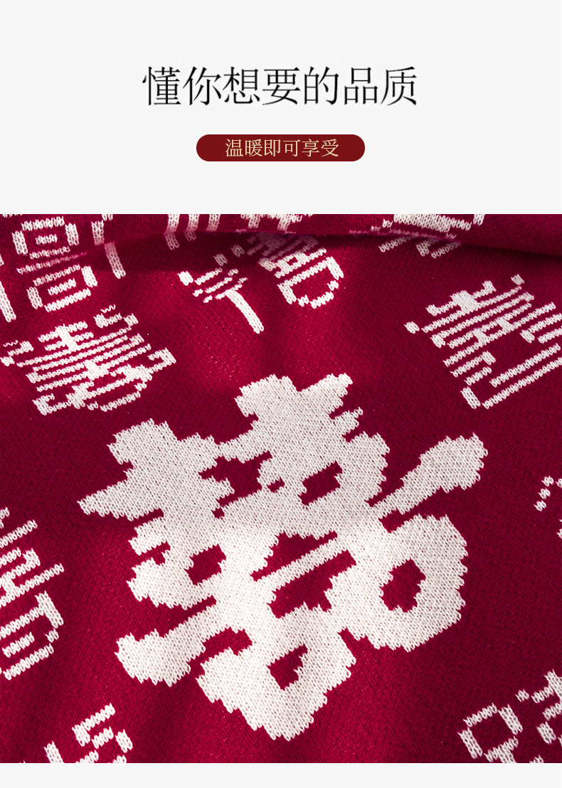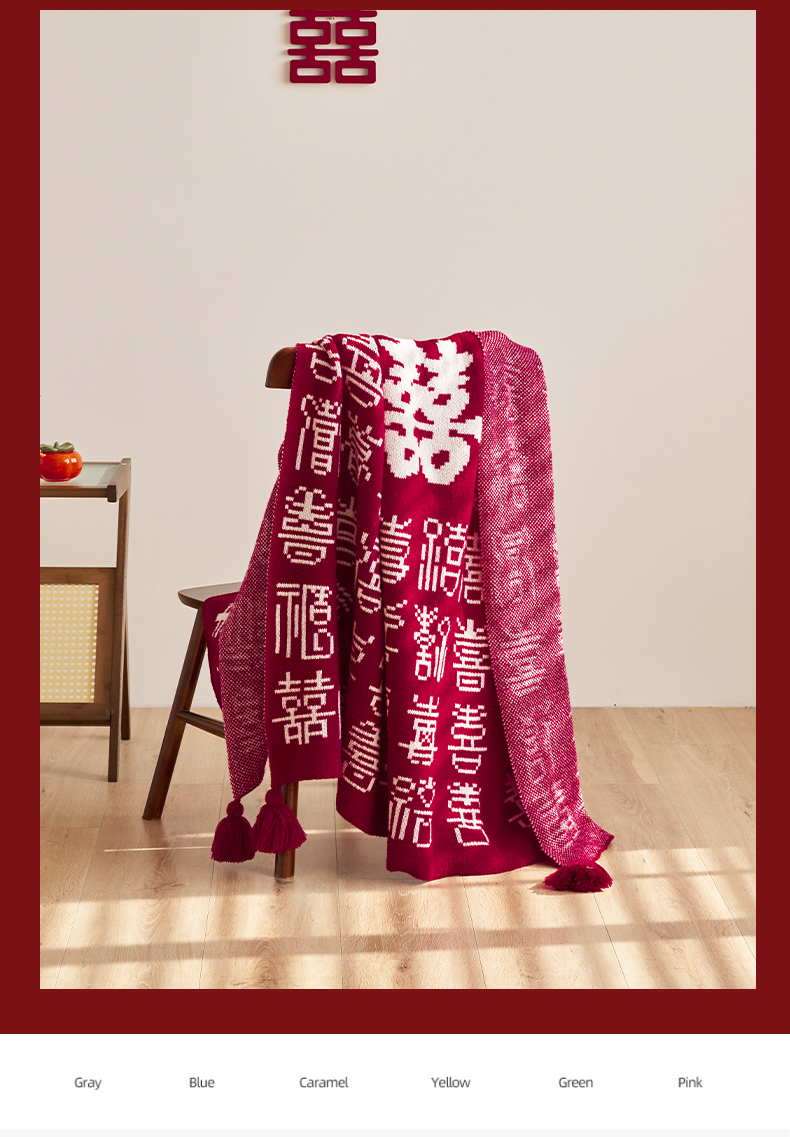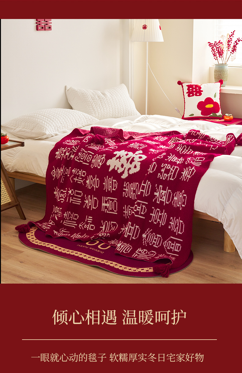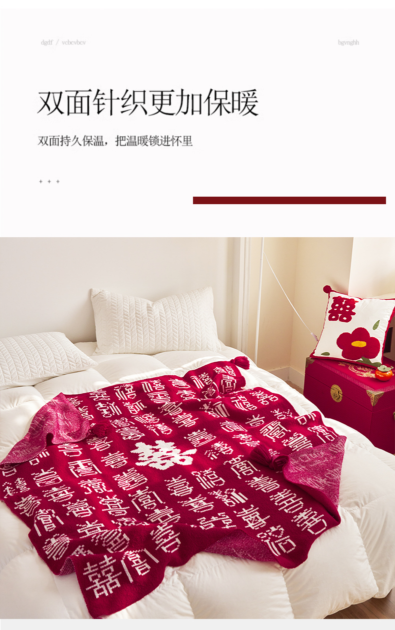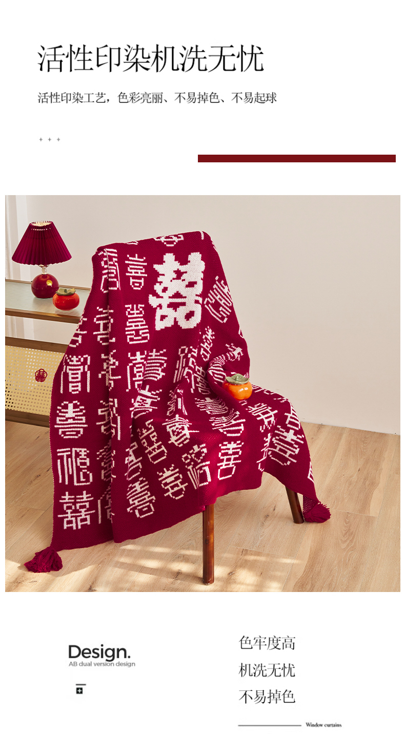 商品名称:苏艺针织盖毯 2024新款针织中式风高端婚礼喜字毛毯沙发盖毯 百喜毯(繁)