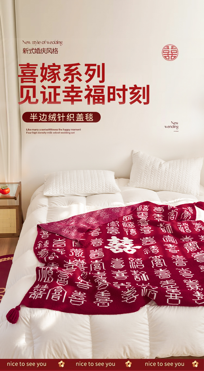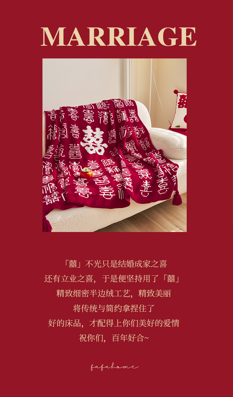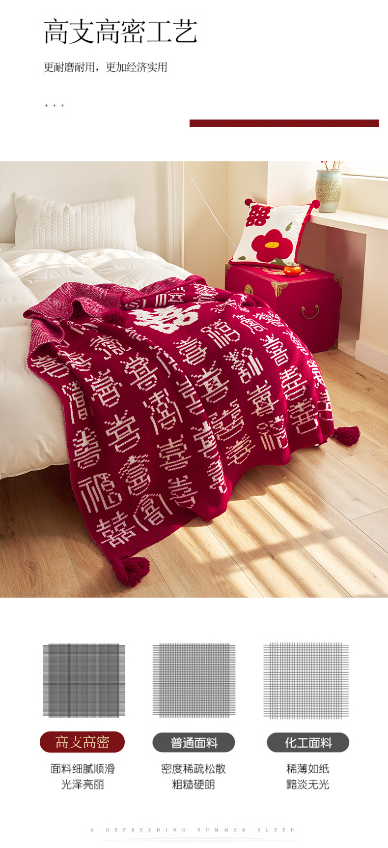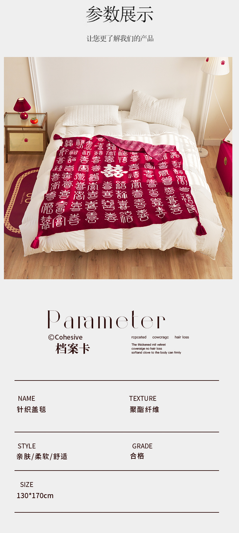 商品名称:苏艺针织盖毯 2024新款针织中式风高端婚礼喜字毛毯沙发盖毯 百喜毯(繁)