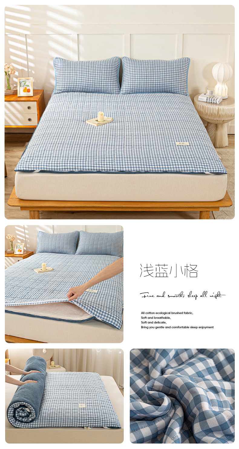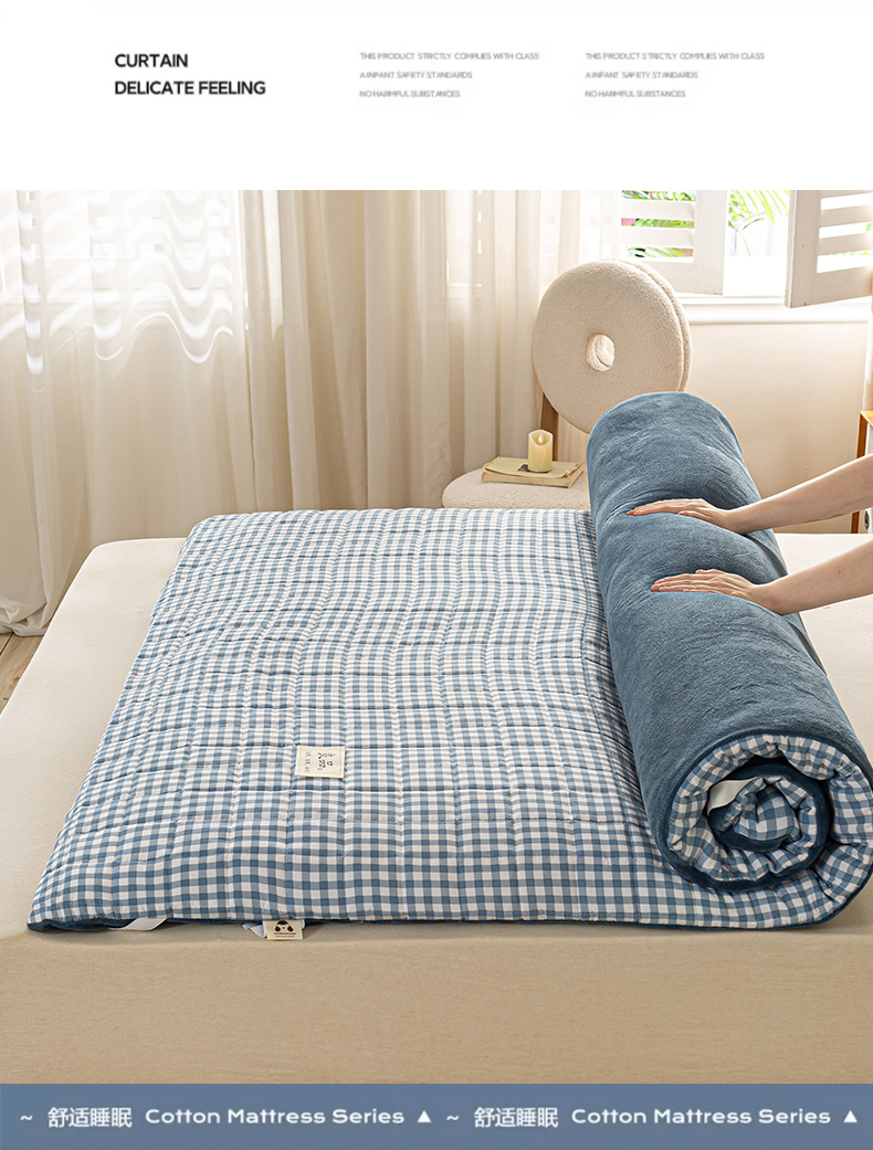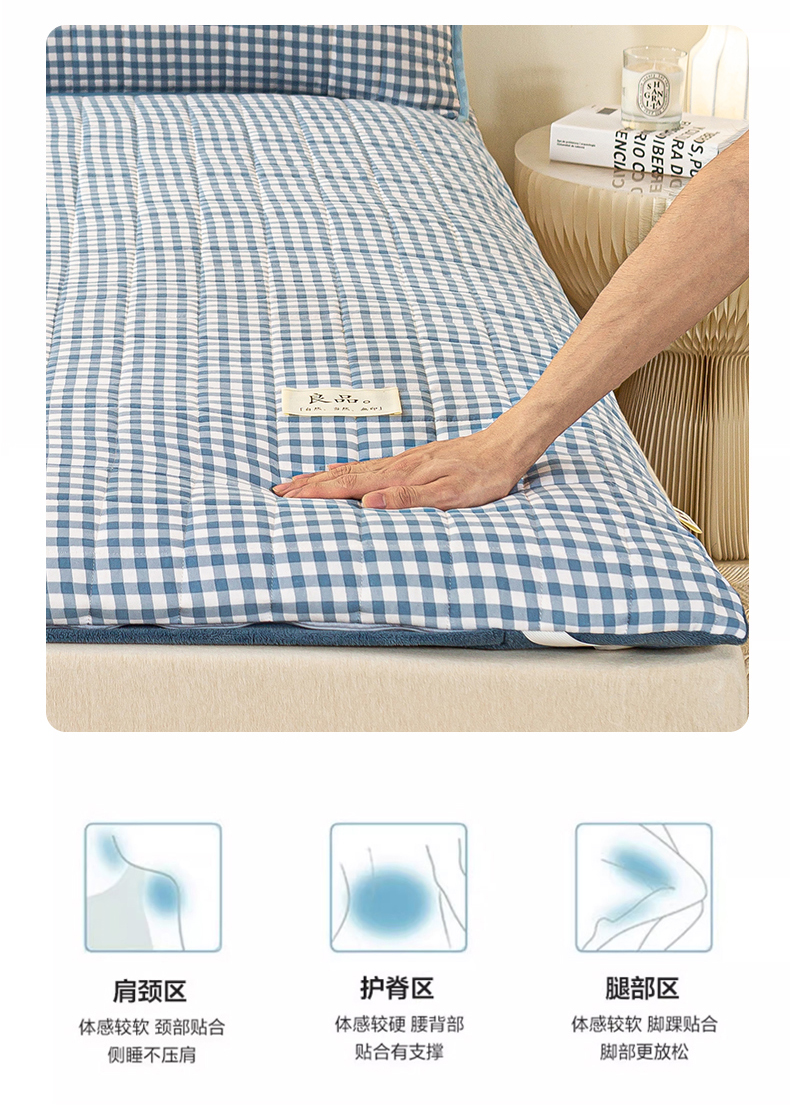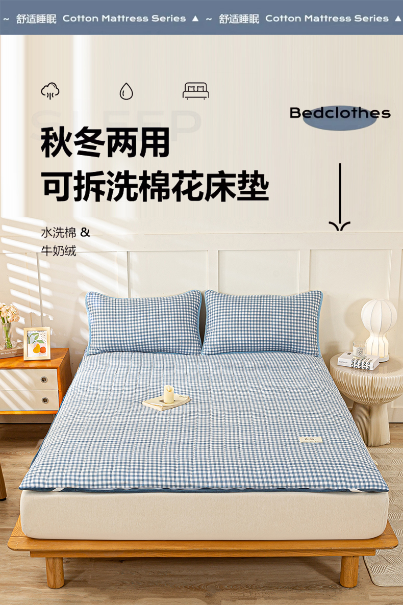 当前位置: 91家纺网 > 商品网购 > 床垫/床褥 > 普通床垫 > 萌飞 2024新款四季款秋冬两用可拆洗棉花学生床垫子牛奶绒褥子 浅蓝小格