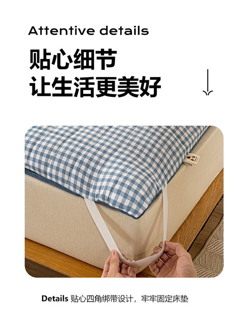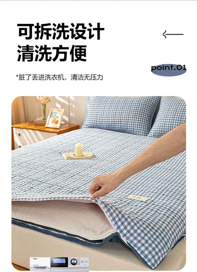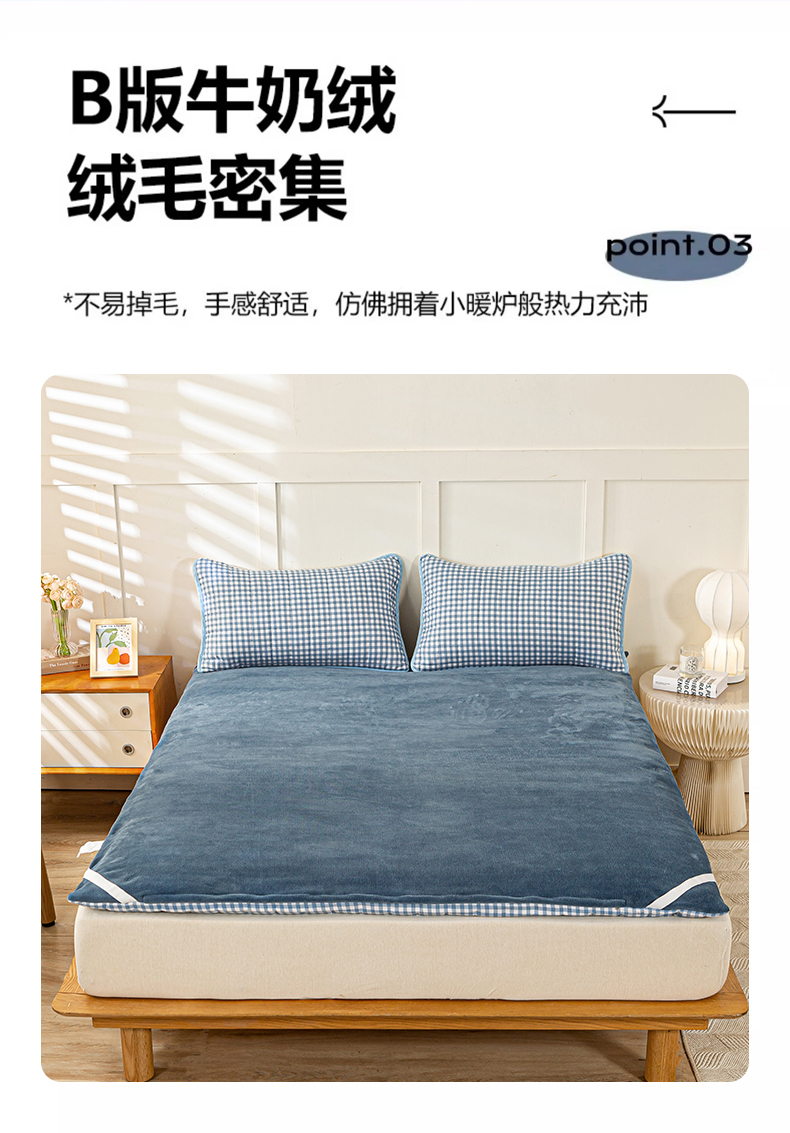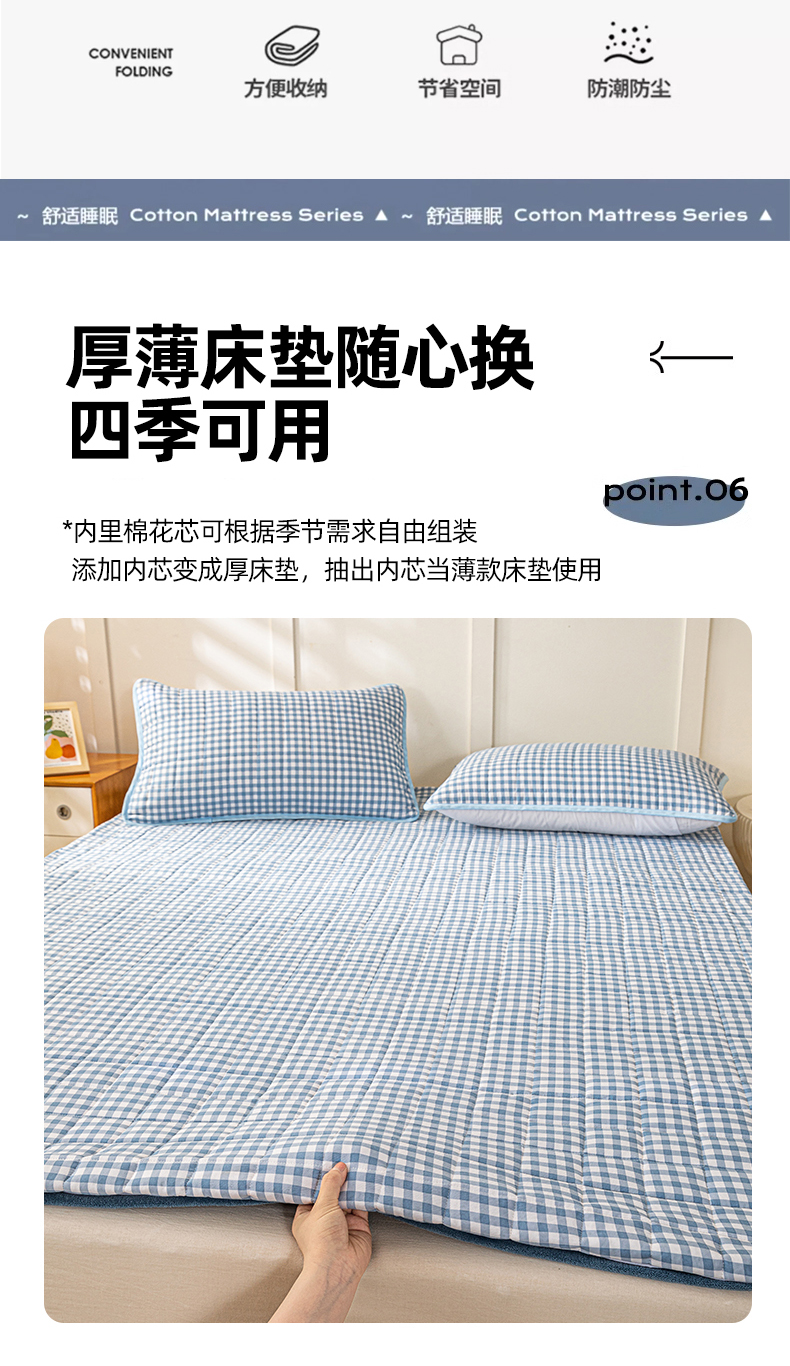 当前位置: 91家纺网 > 商品网购 > 床垫/床褥 > 普通床垫 > 萌飞 2024新款四季款秋冬两用可拆洗棉花学生床垫子牛奶绒褥子 浅蓝小格