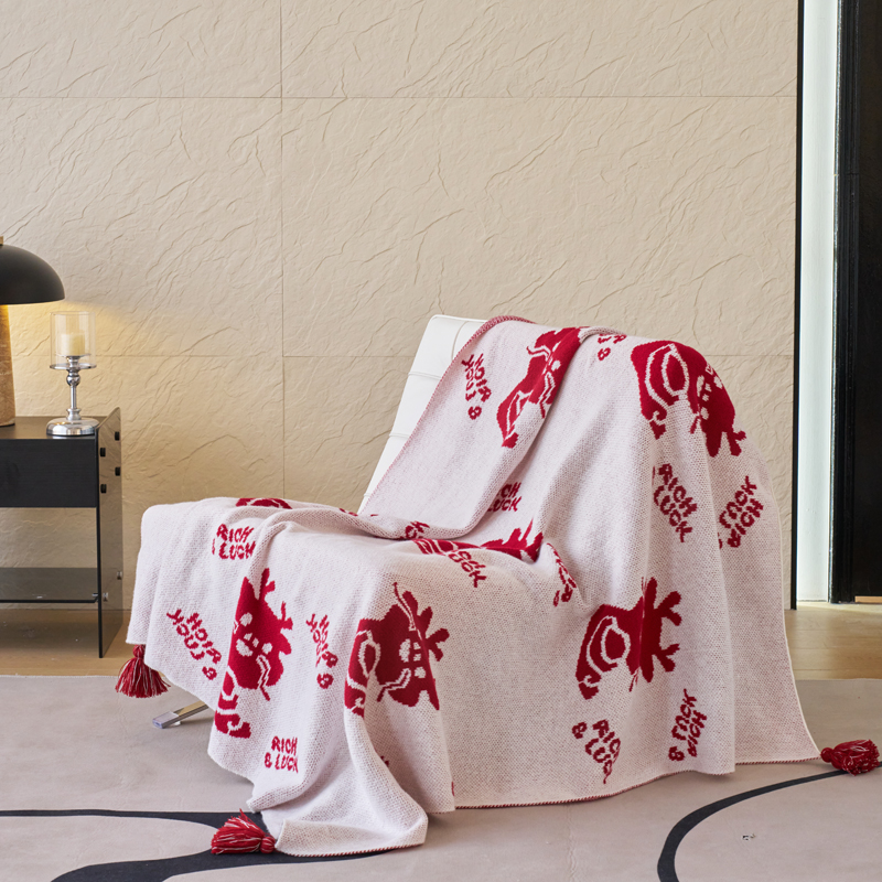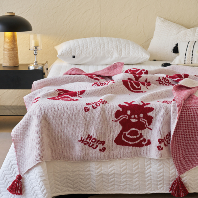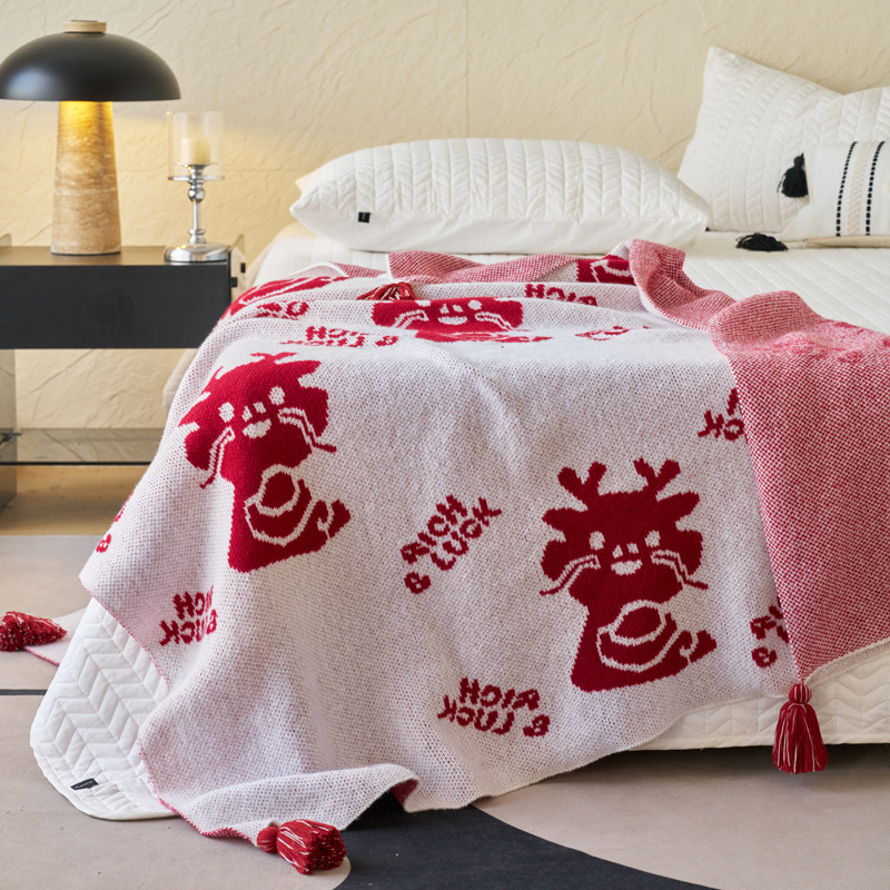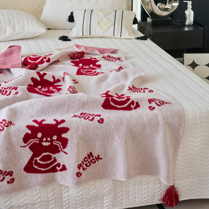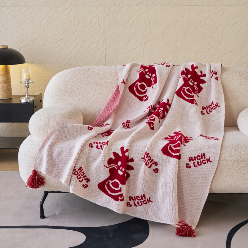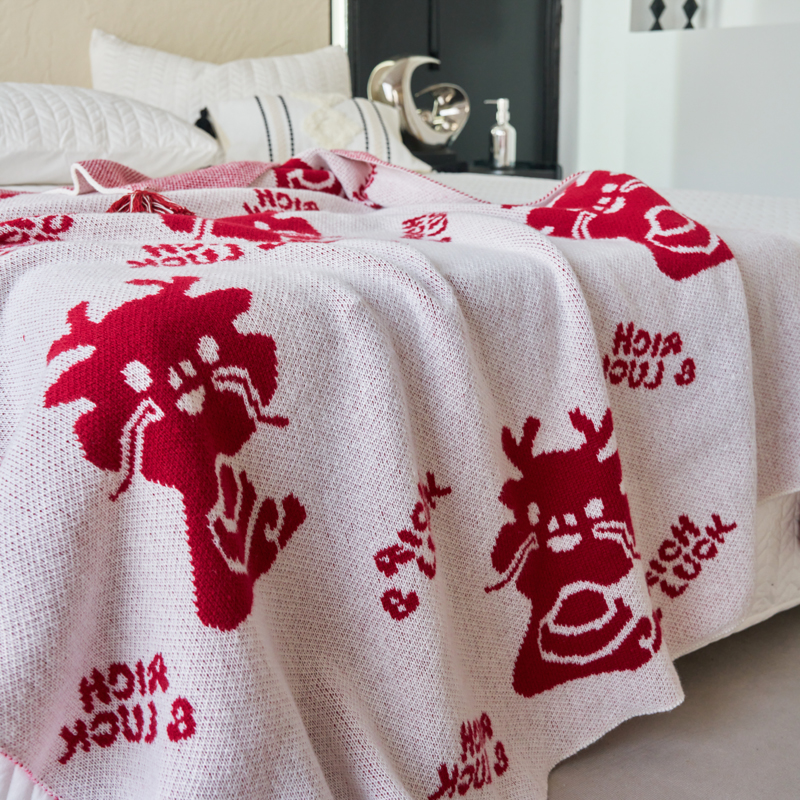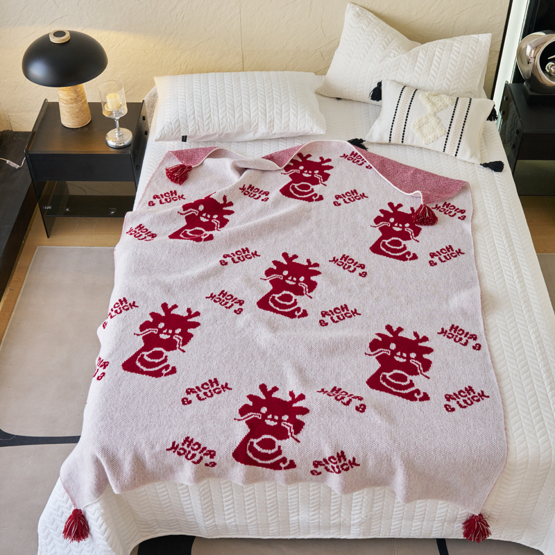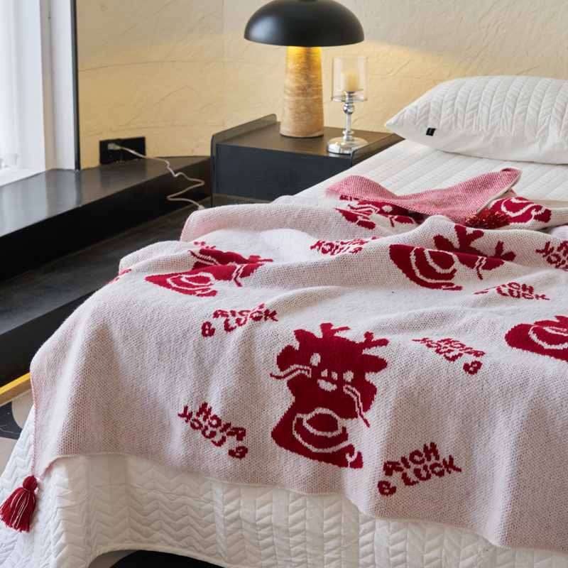 (总)苏艺针织盖毯 2024新款龙年限定针织亲肤毯龙年大吉盖毯,龙年大吉(白),龙年大吉(红),龙年进宝 (白),龙年进宝(红)