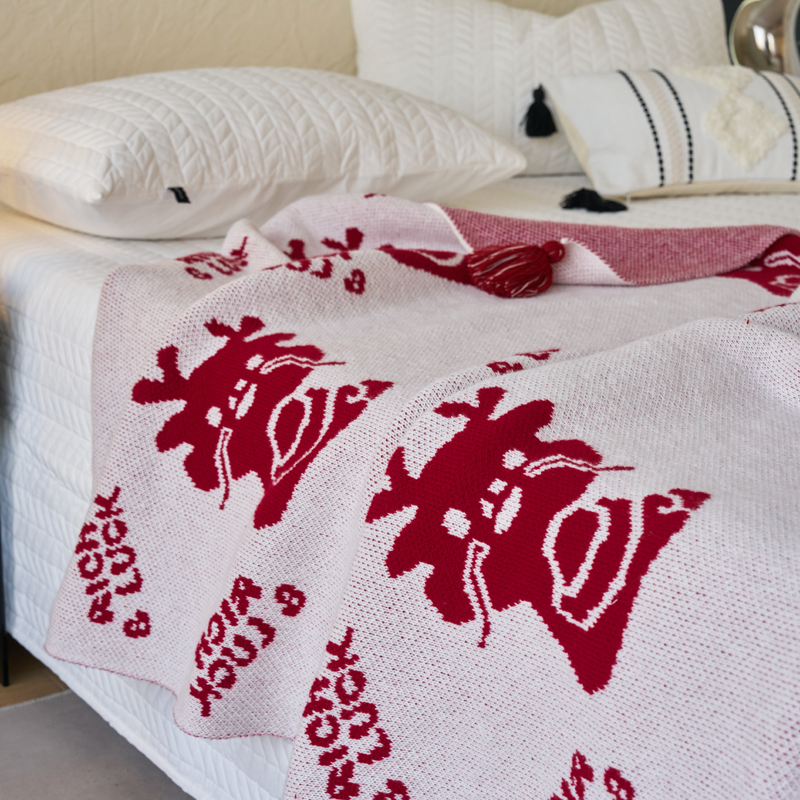 (总)苏艺针织盖毯 2024龙年限定高克重一体针织毛巾绣亲肤毛毯盖毯,祥龙献瑞 (红),祥龙献瑞(白),一鹿有你(白),一鹿有你(红)