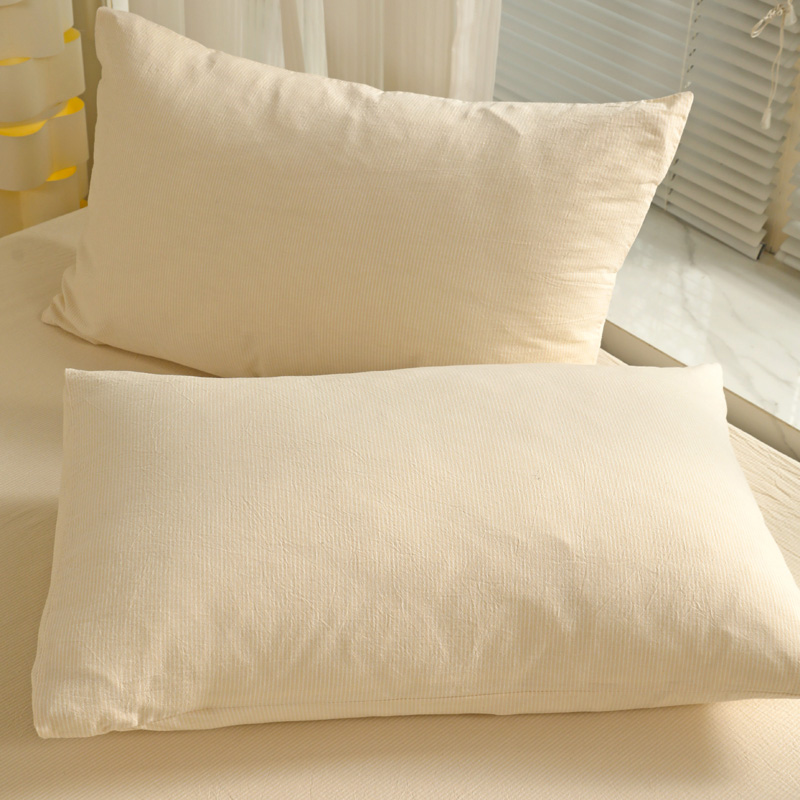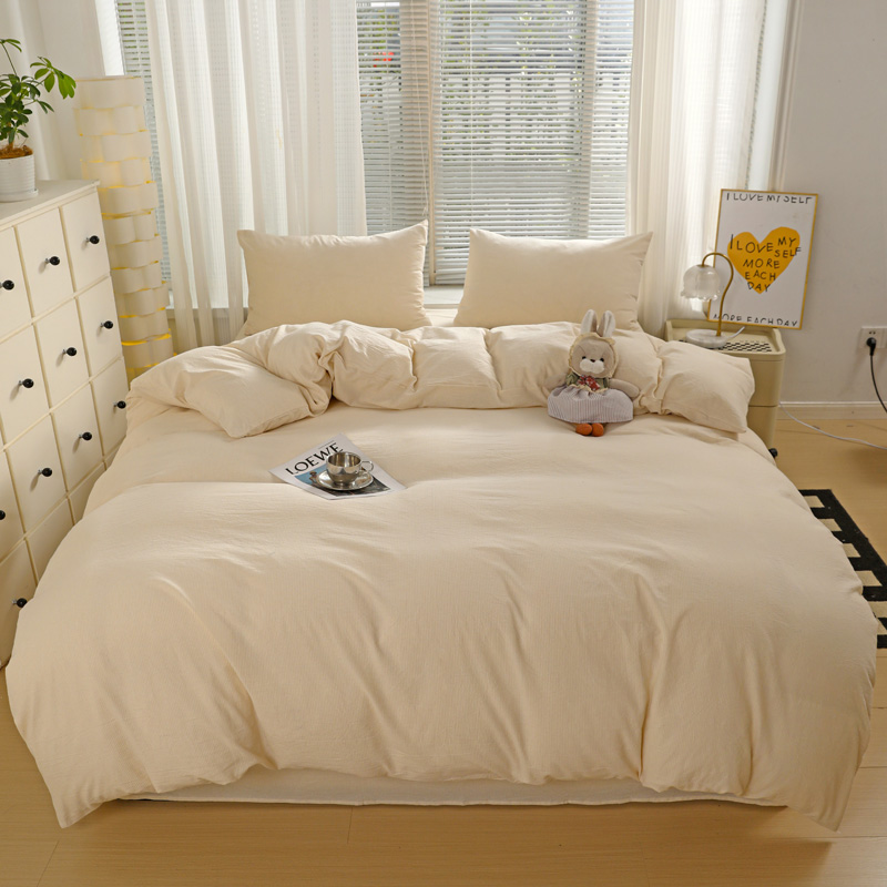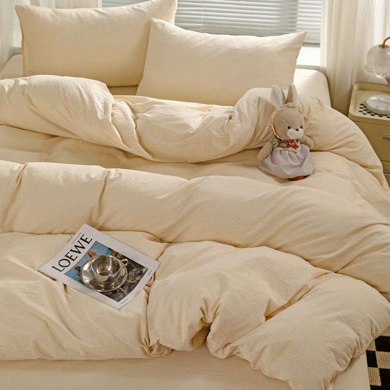 商品名称:呗旺鹿 2024新款A类40支全棉色织水洗棉四件套全棉四件套纯棉四件套无印风 时尚简约杏色