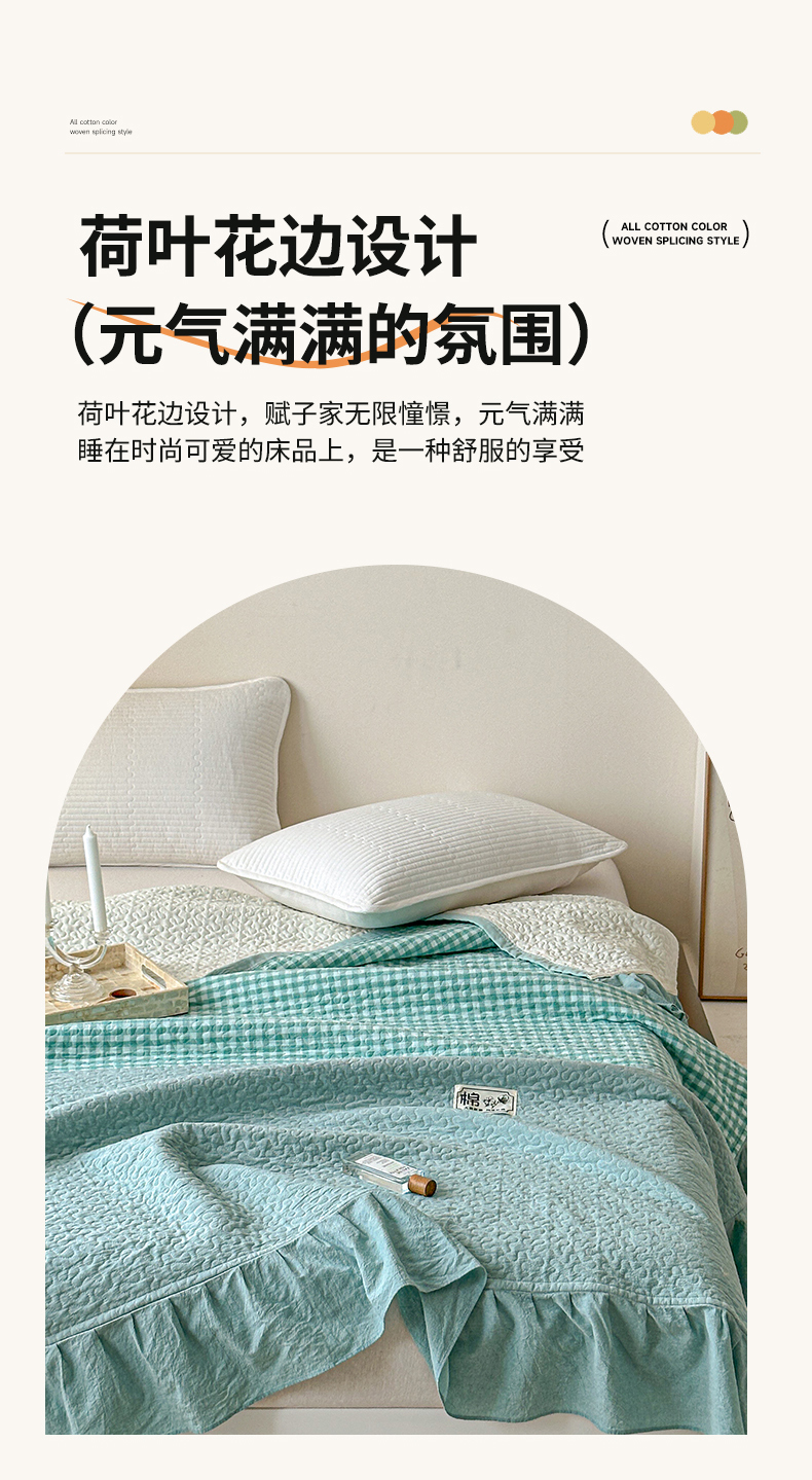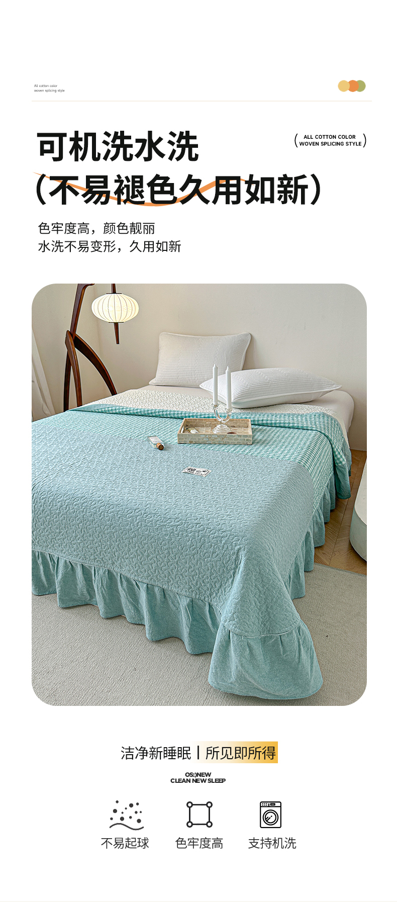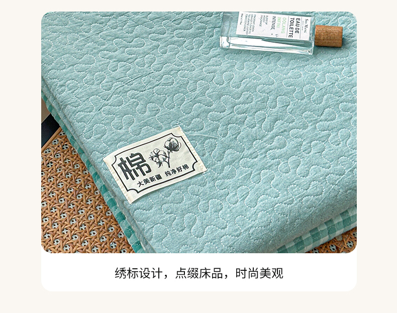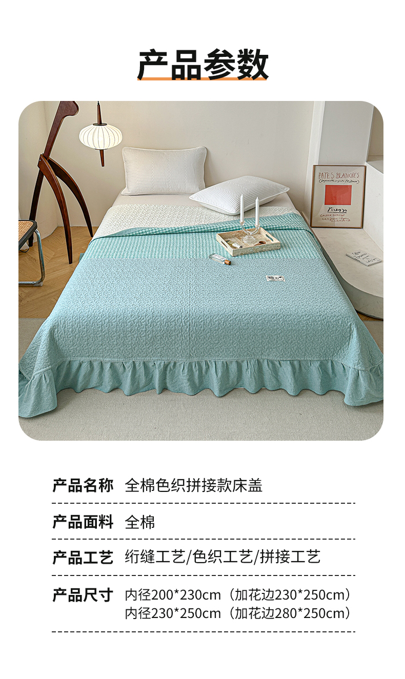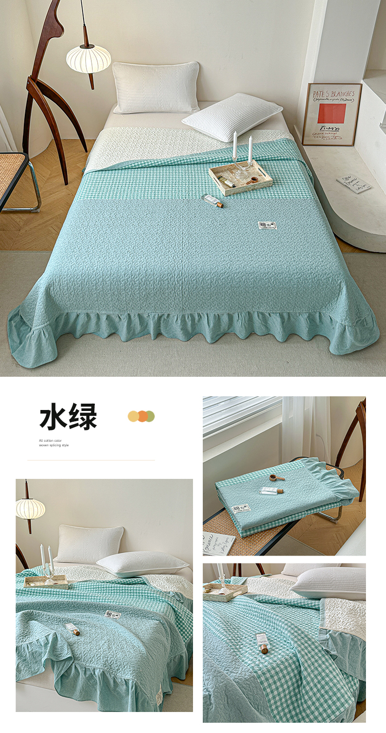 商品名称:源舜家纺 2025新款全棉色织拼接款床盖 水绿