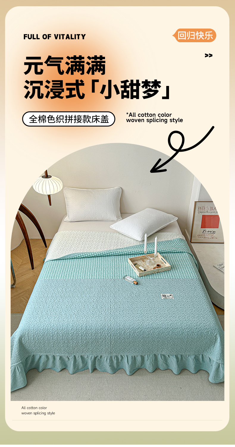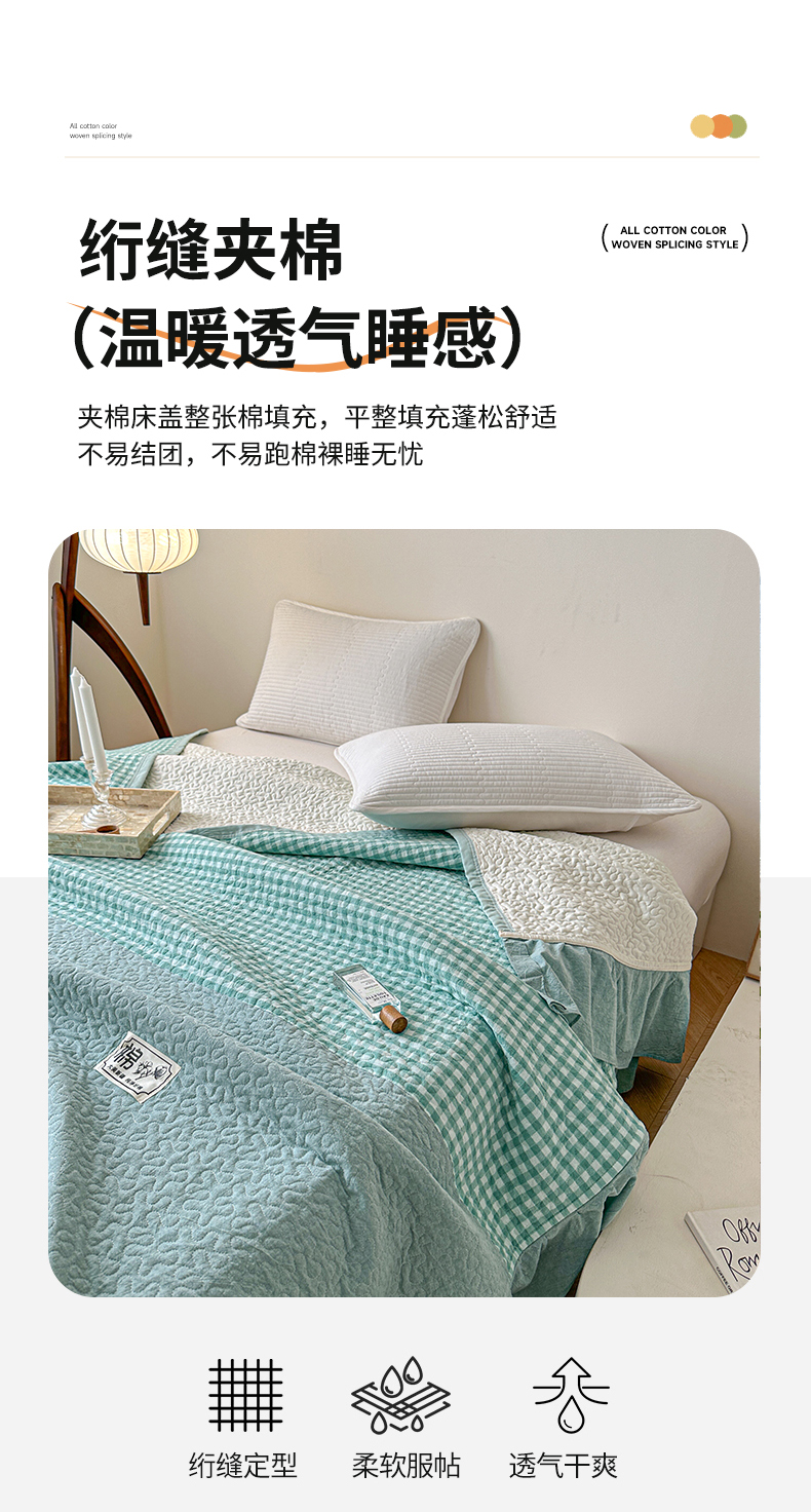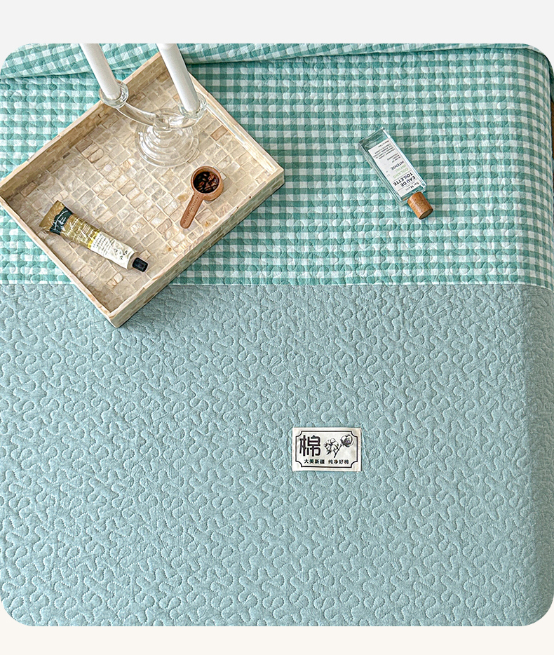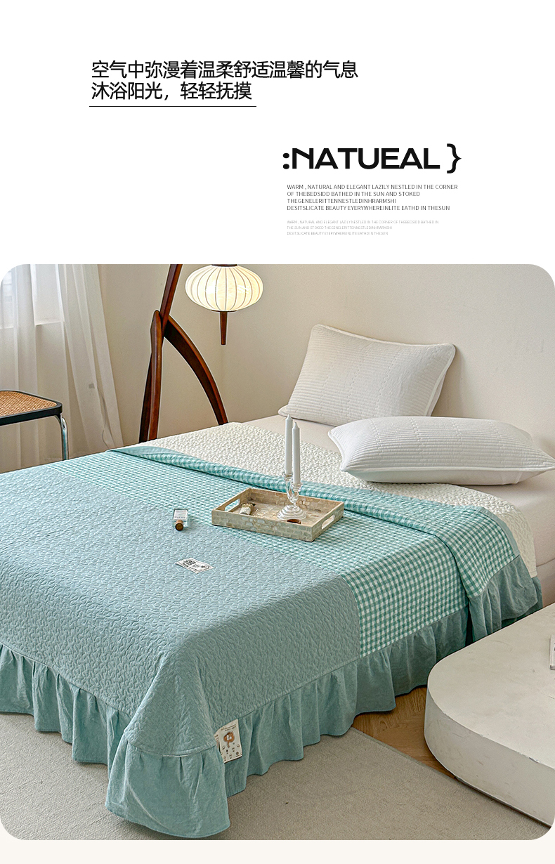 商品名称:源舜家纺 2025新款全棉色织拼接款床盖 水绿
