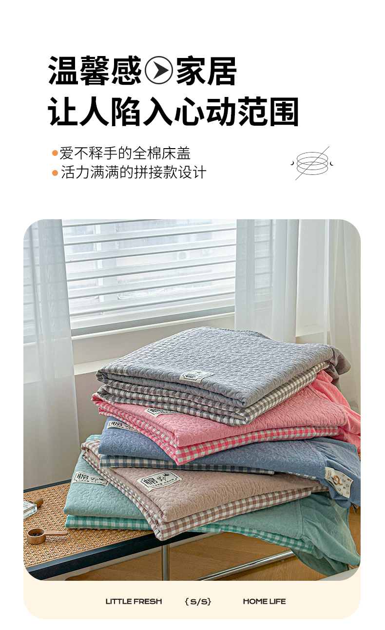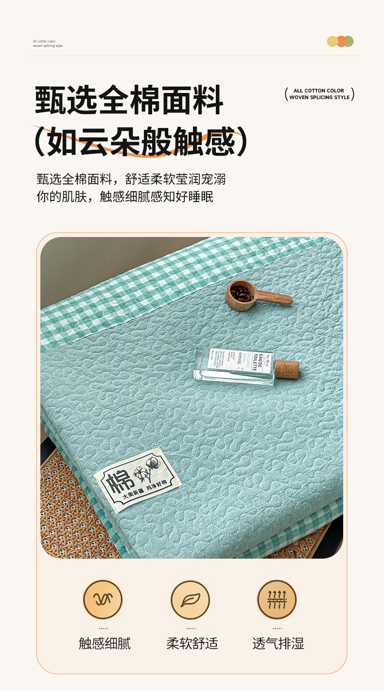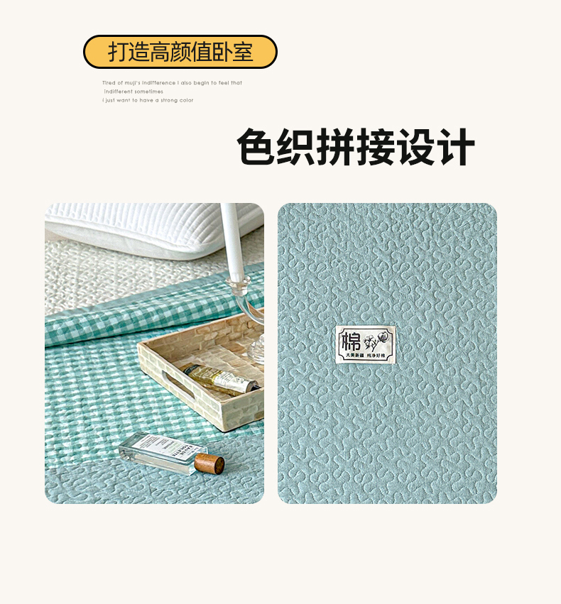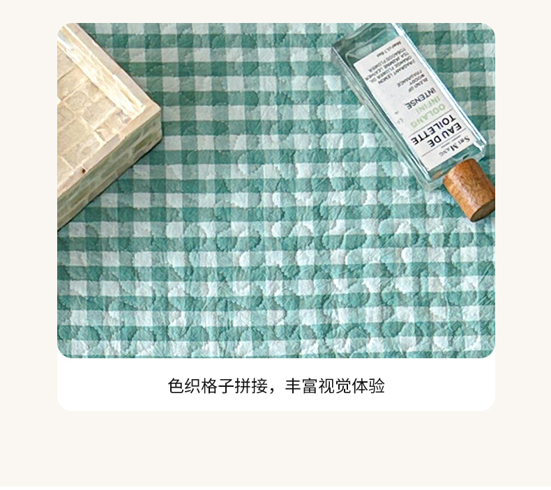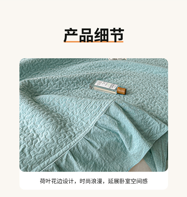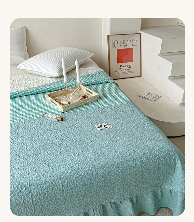 商品名称:源舜家纺 2025新款全棉色织拼接款床盖 水绿