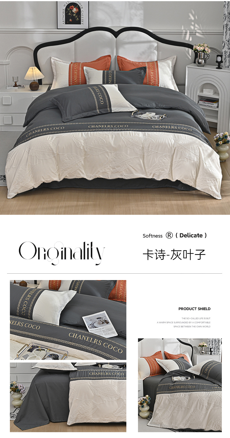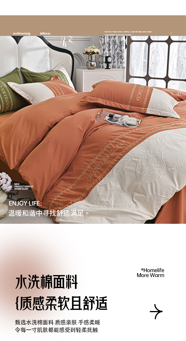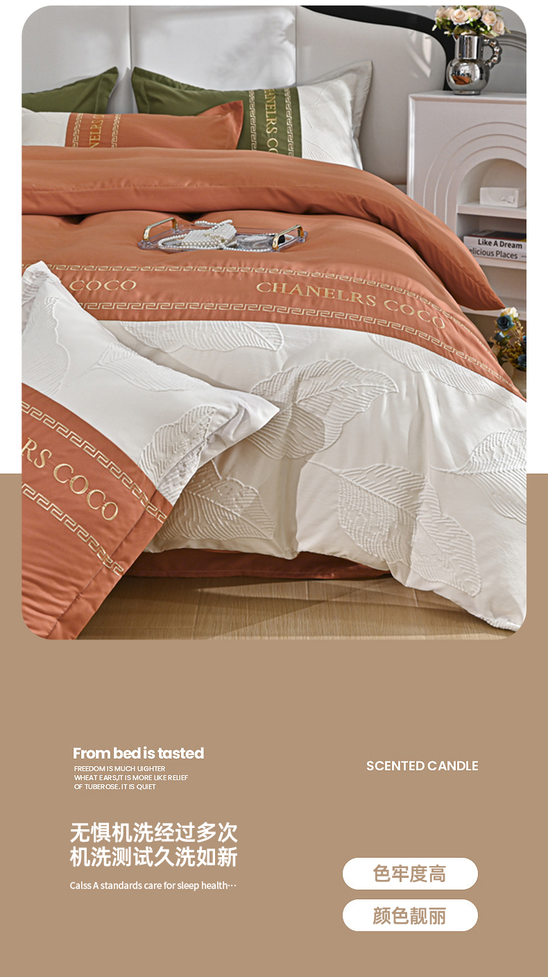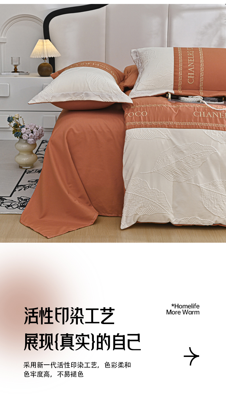 (总)富宁家纺 2025新款直播爆款水洗棉磨毛立体浮雕刺绣四件套-卡诗,橙叶子,灰叶子,粉叶子,绿叶子,蓝叶子