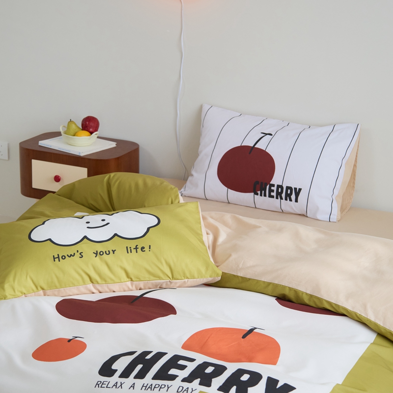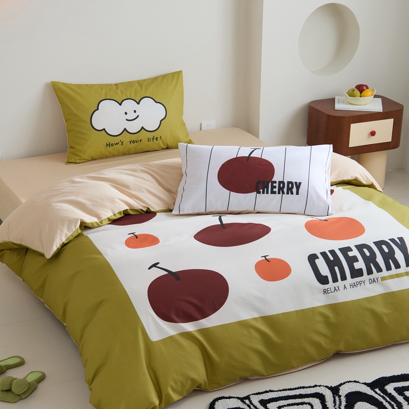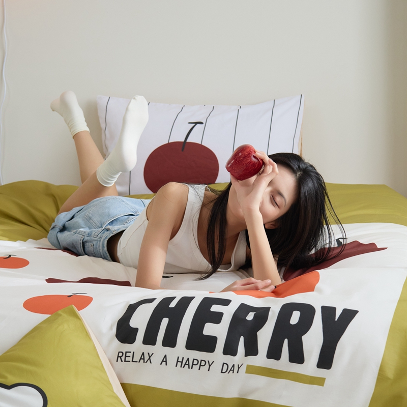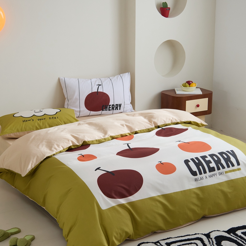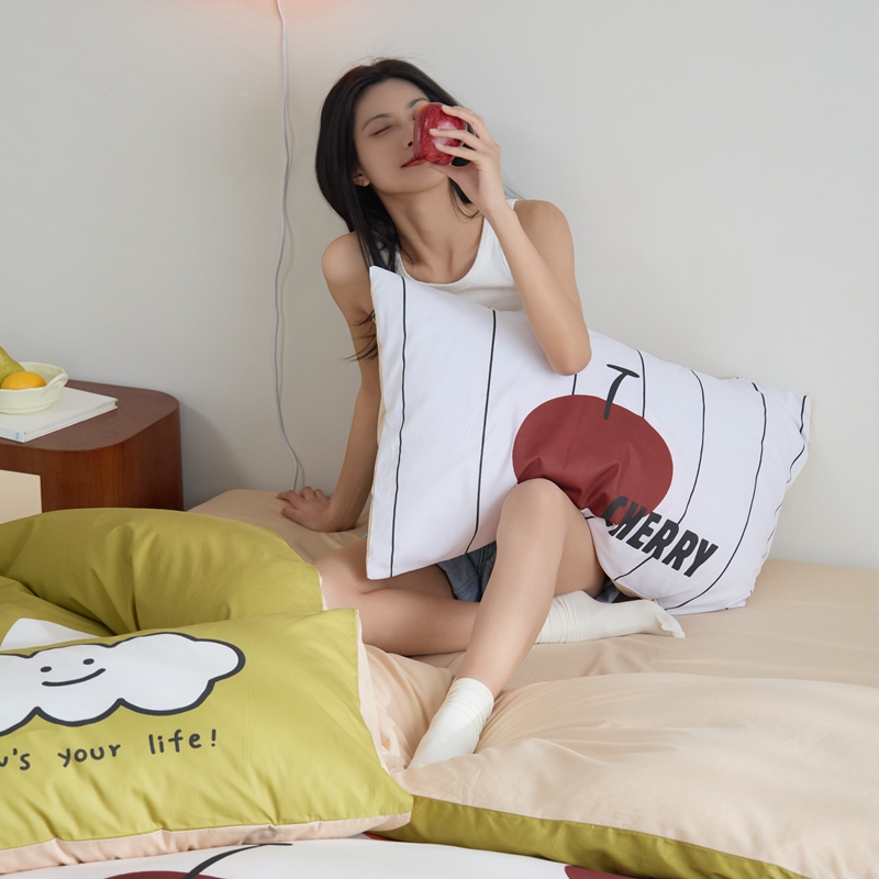 (总)原研家居 2023新款40支全棉13070印花四件套-野兽派系列,樱桃猫,公主猫,波浪猫,黑乖,蓝条狗,小花狗,竹叶熊,水果茶,波点苹果,生椰冰淇凌,青春