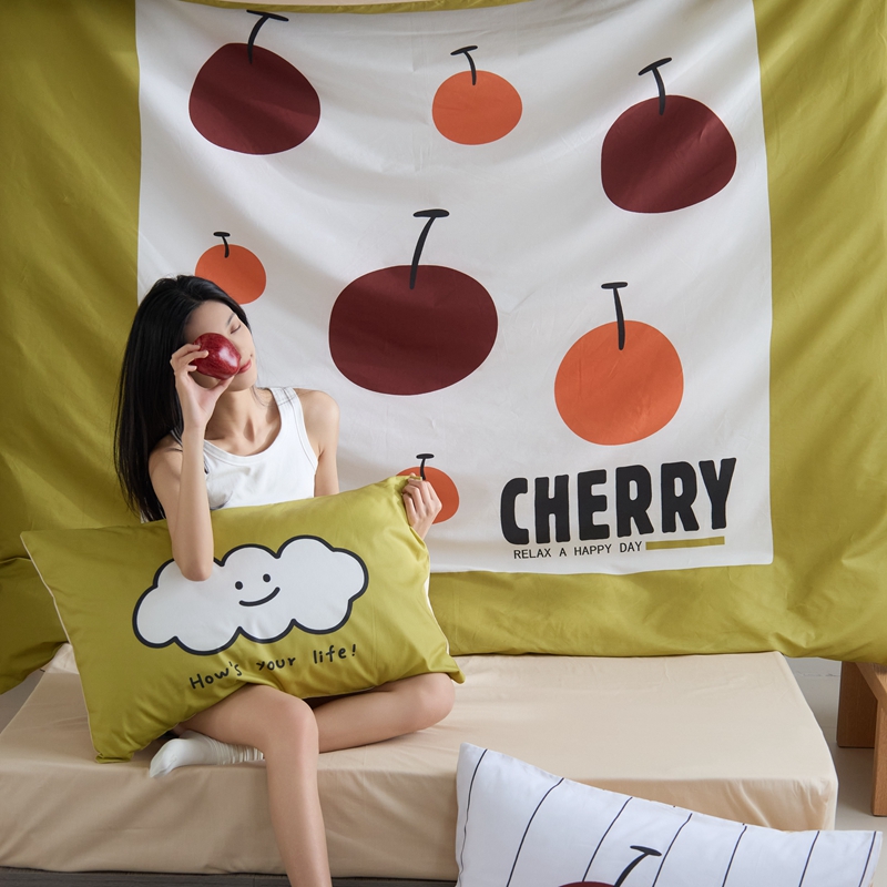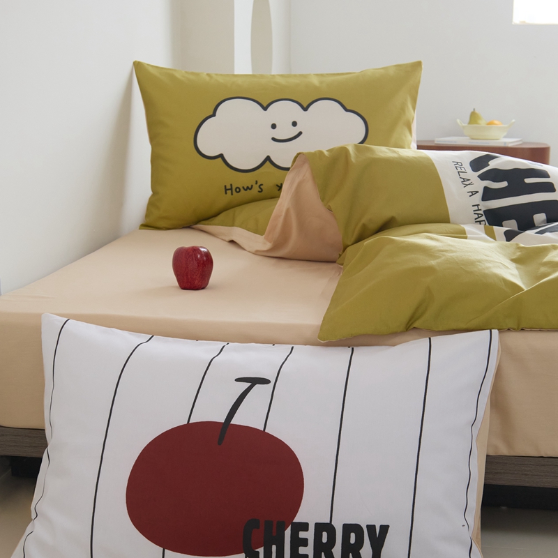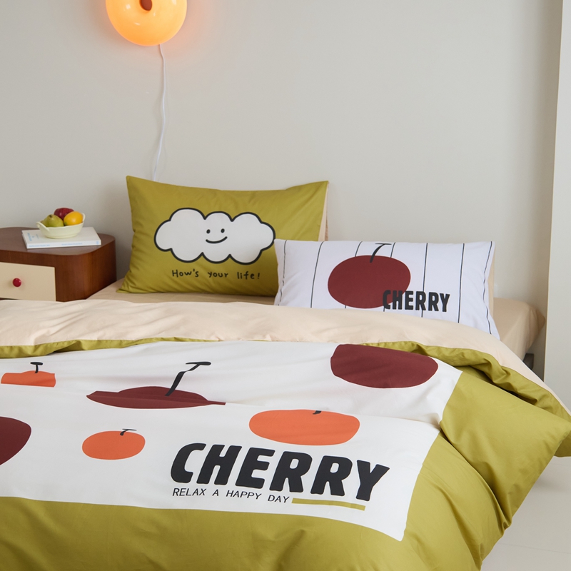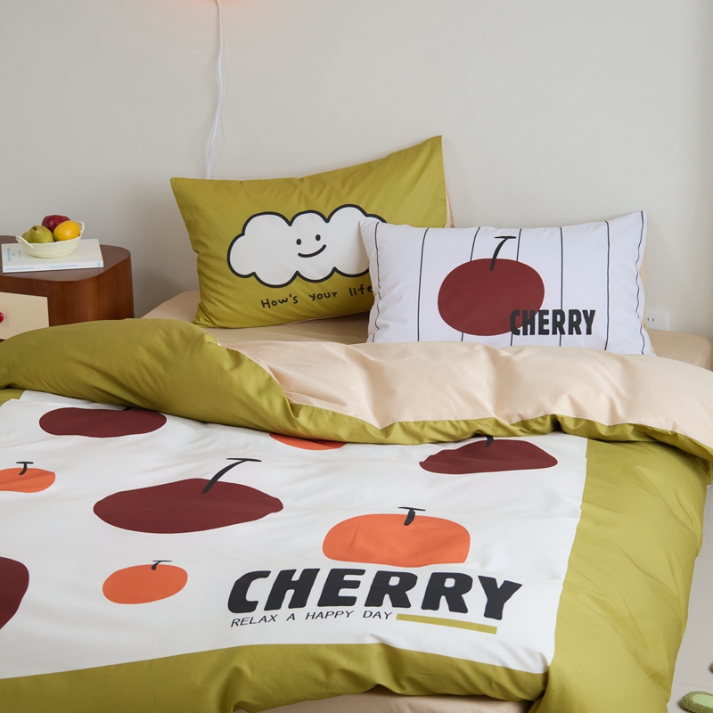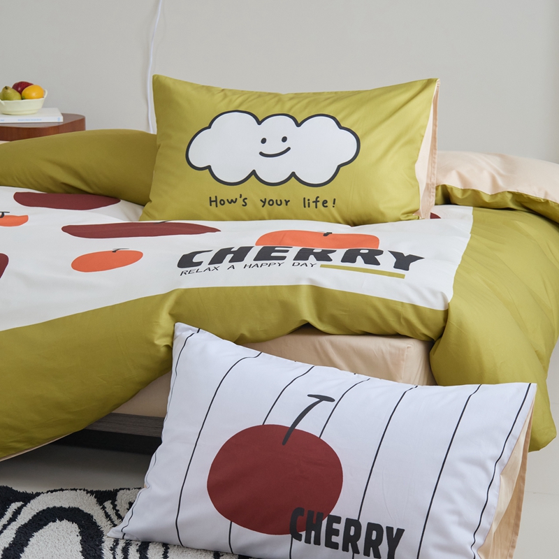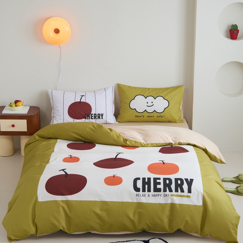 (总)原研家居 2023新款40支全棉13070印花四件套-野兽派系列,樱桃猫,公主猫,波浪猫,黑乖,蓝条狗,小花狗,竹叶熊,水果茶,波点苹果,生椰冰淇凌,青春