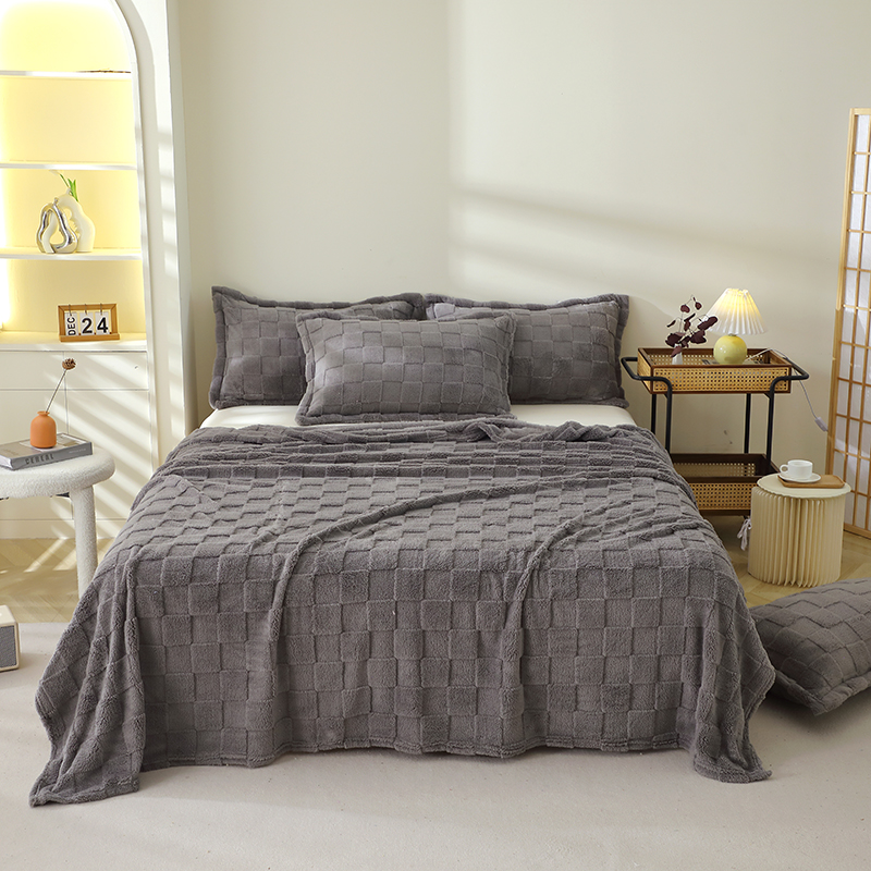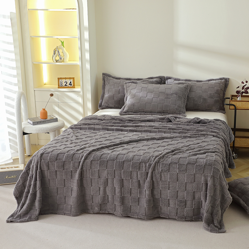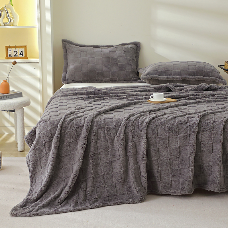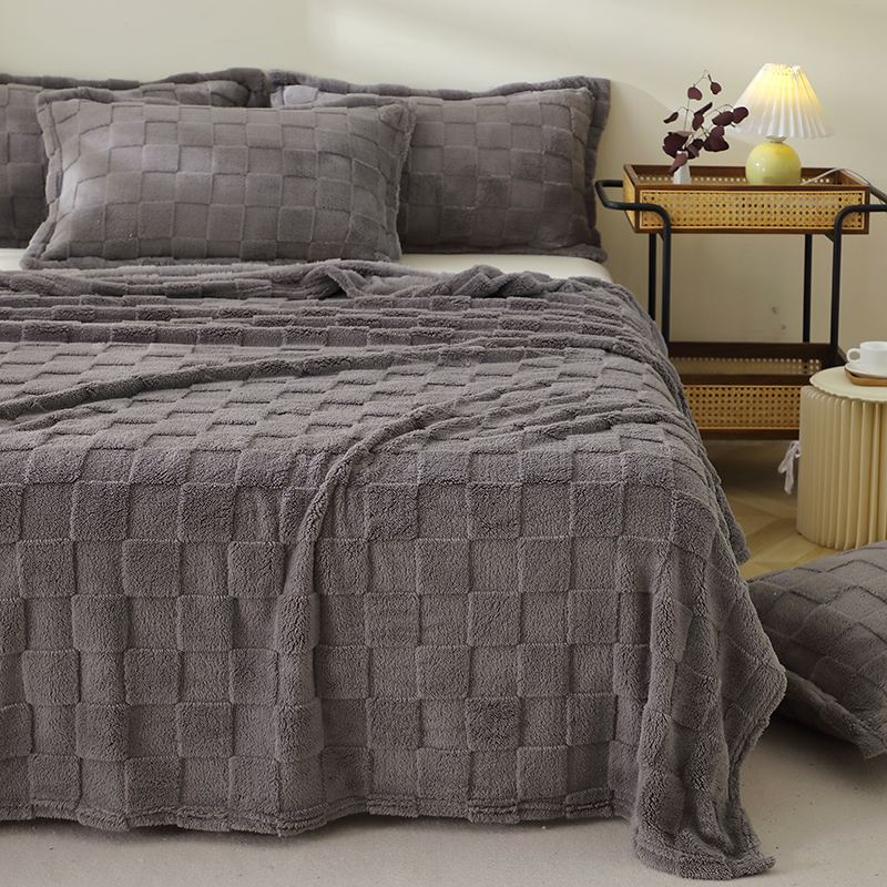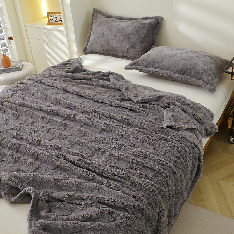 商品名称:芸锦豪 2024新款意大利面包格毛毯-卷边款 深灰