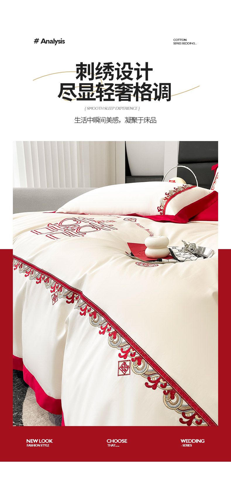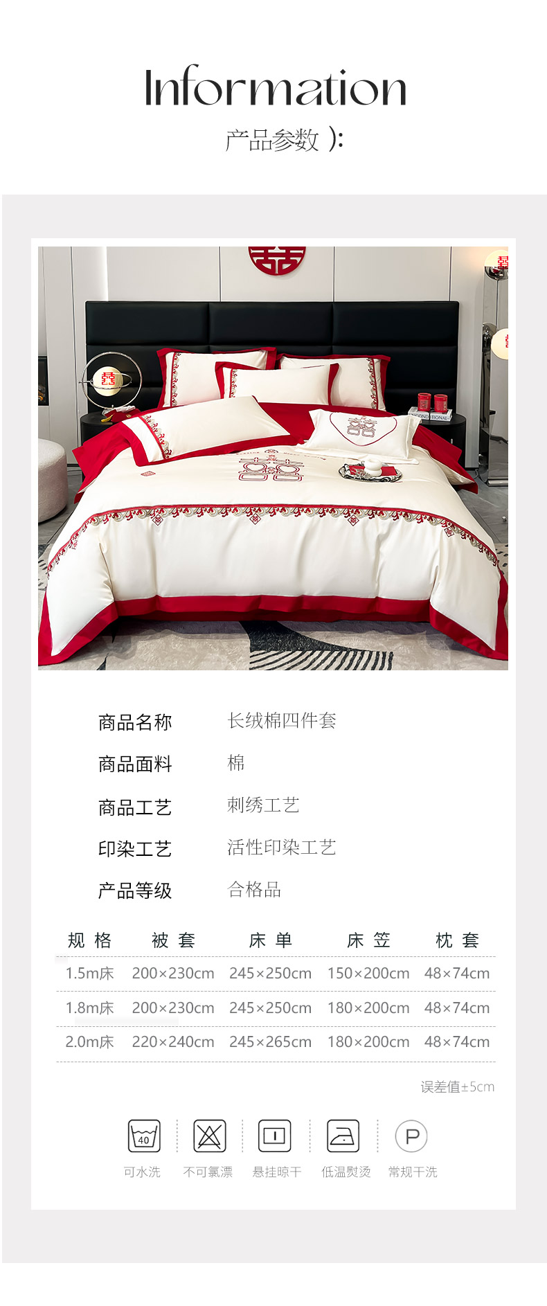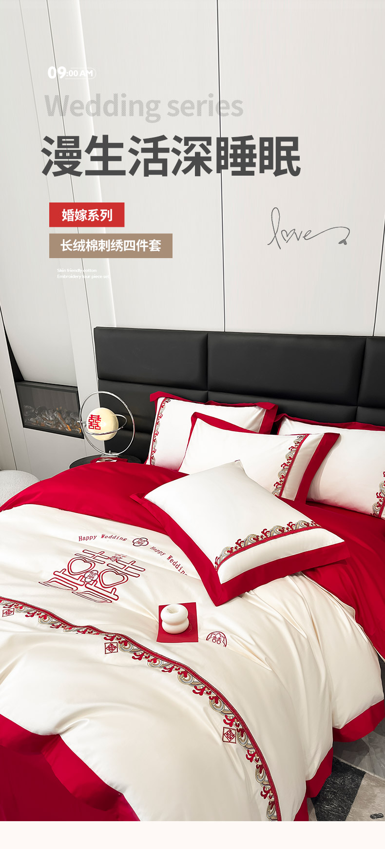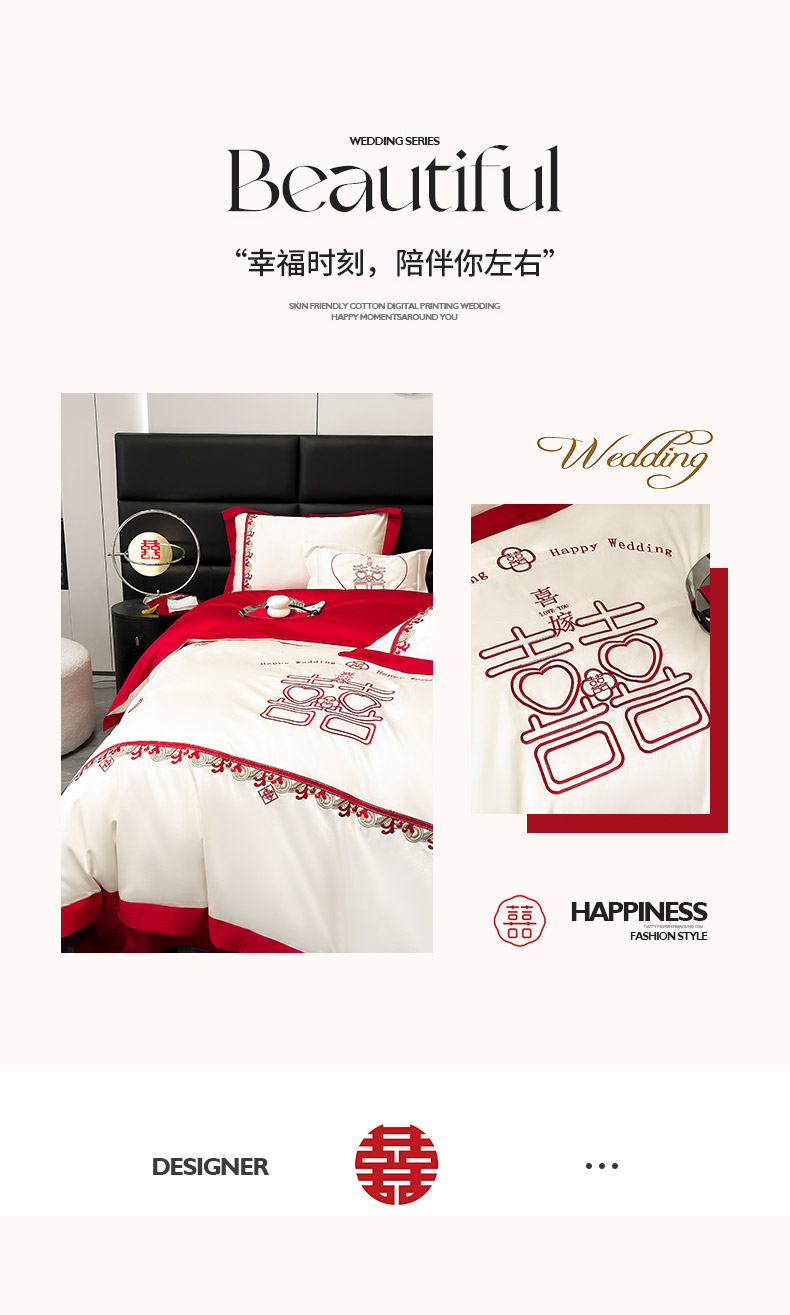 商品名称: 婚庆100支贡缎长绒棉四件套全棉纯棉刺绣结婚床单被套红色纯色床笠款床上用品 欢喜余生-新妍玉