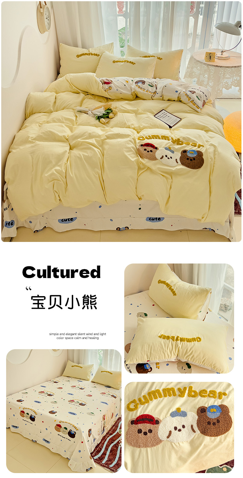 当前位置: 91家纺网 > 商品网购 > 床品套件 > 四件套 > 其它四件套 > 玉海棠家纺 2024新款超柔云朵棉毛巾绣四件套 宝贝小熊