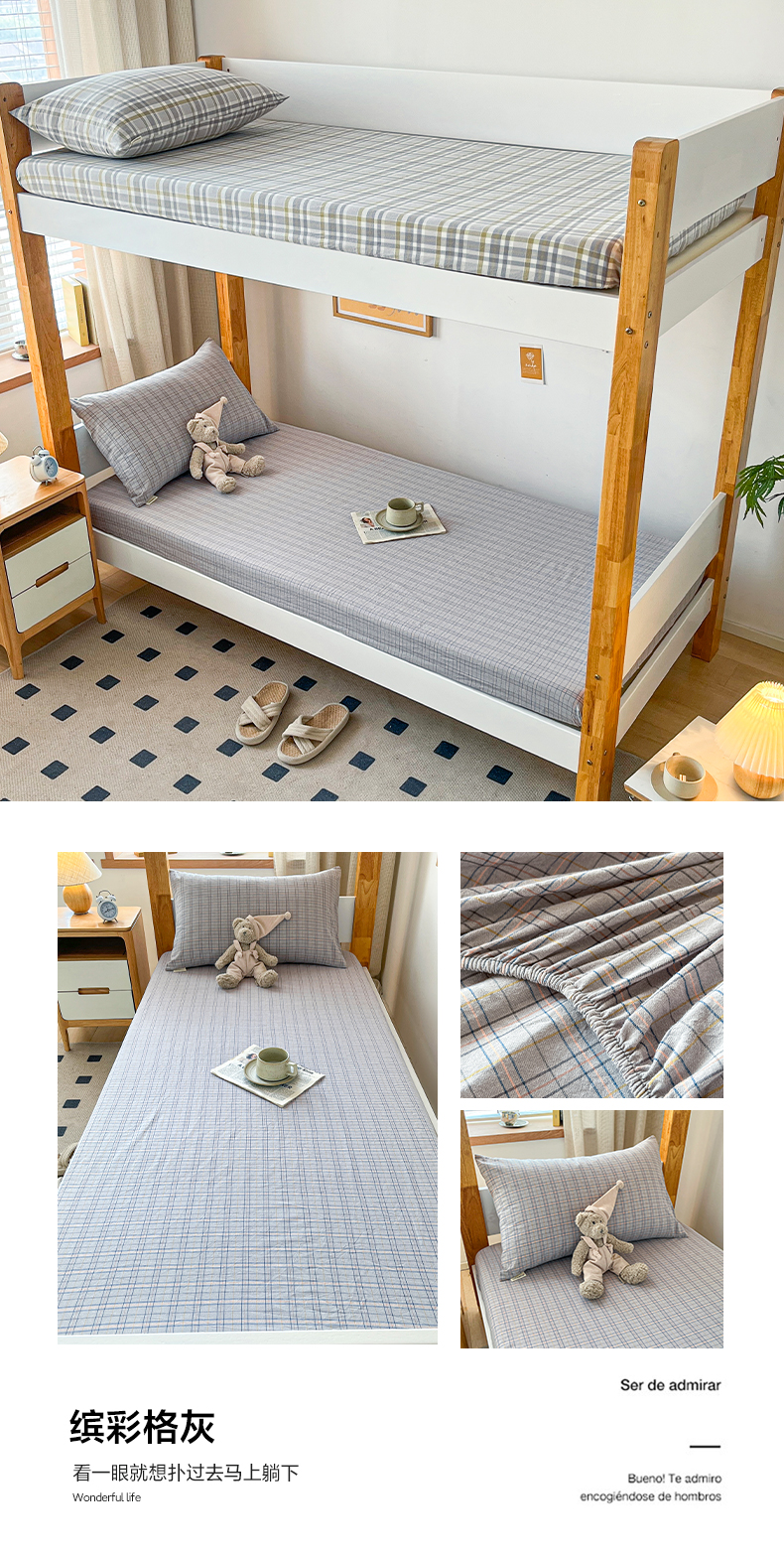 • 91家纺网 家纺一手货源 找家纺 居眠  2024新款全棉色织单层学生床笠 缤彩格灰