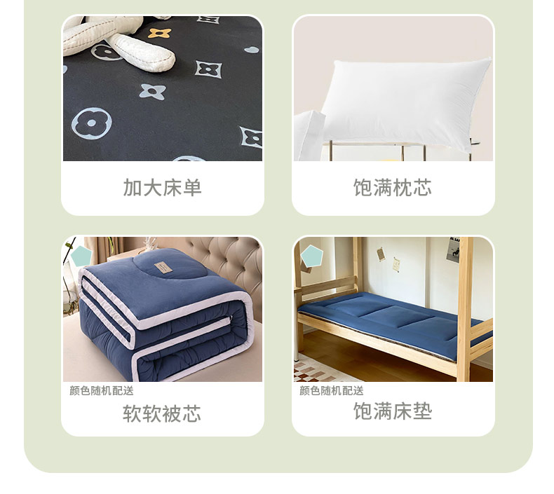 0.9m床垫上下铺六件套3斤被芯 | ¥94.00 |