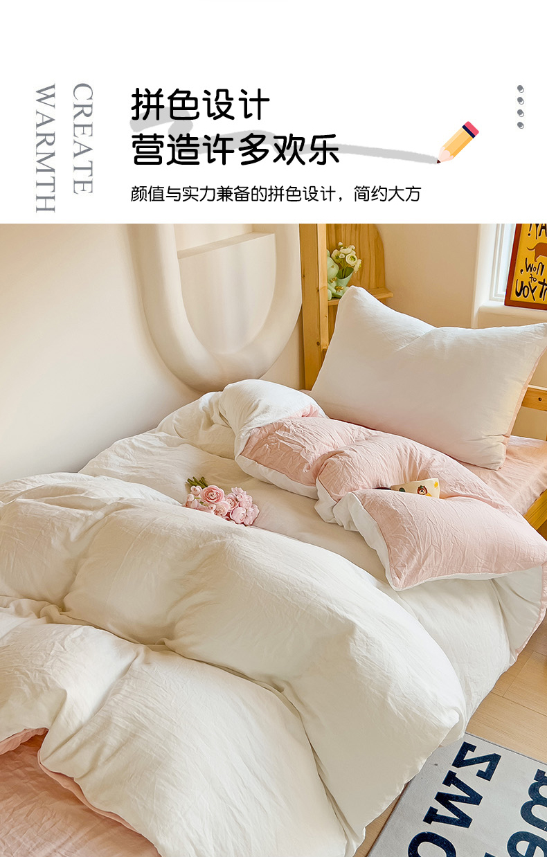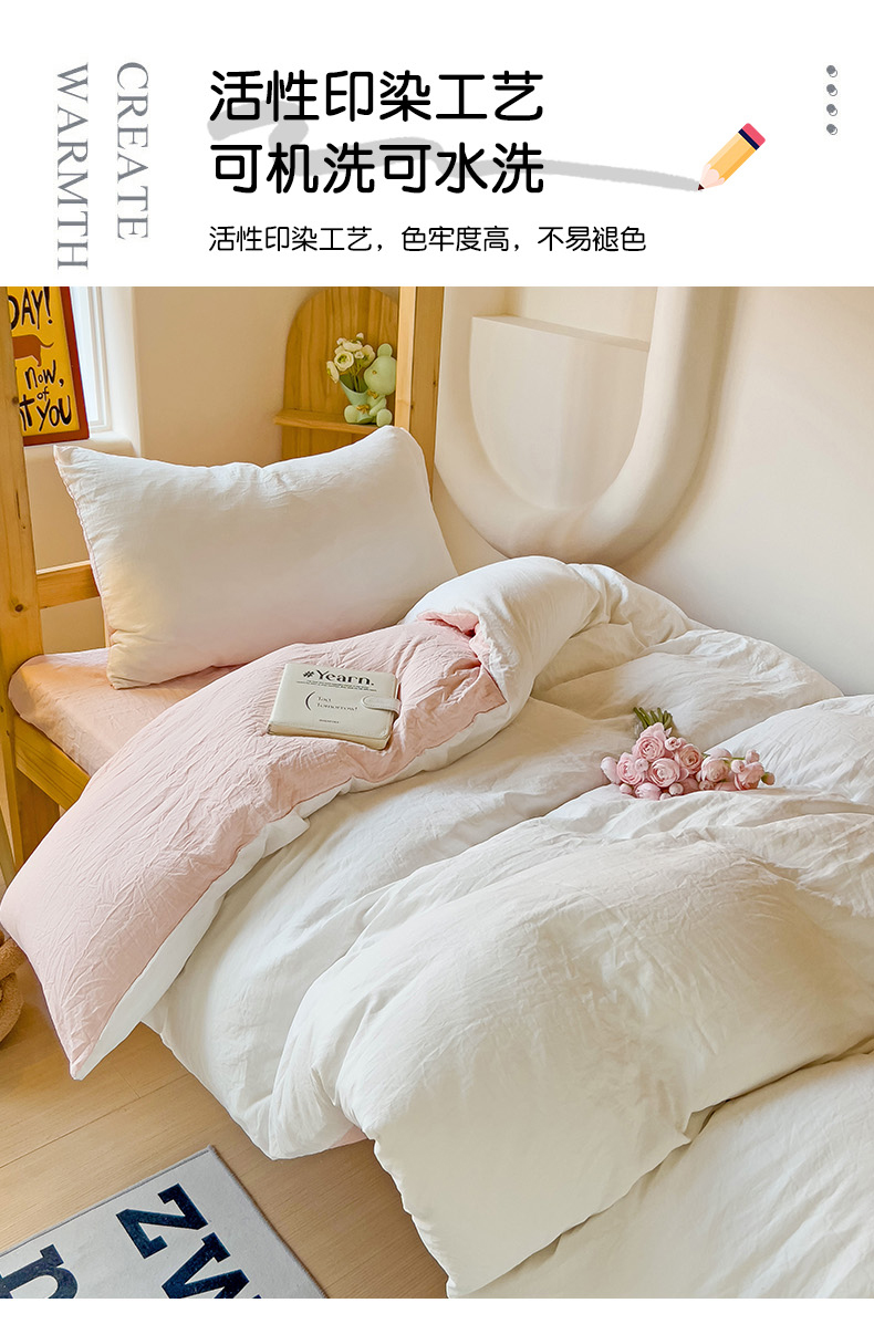 当前位置: 91家纺网 > 商品网购 > 床品套件 > 三件套 > 韩巢家纺 2024新款学生宿舍寝室上下铺超柔水洗棉床单被套三件套-纯色双拼(提供卖家秀) 水洗棉白浅粉