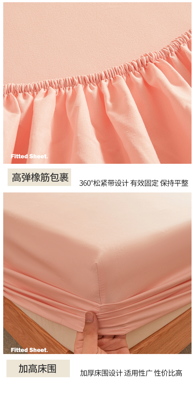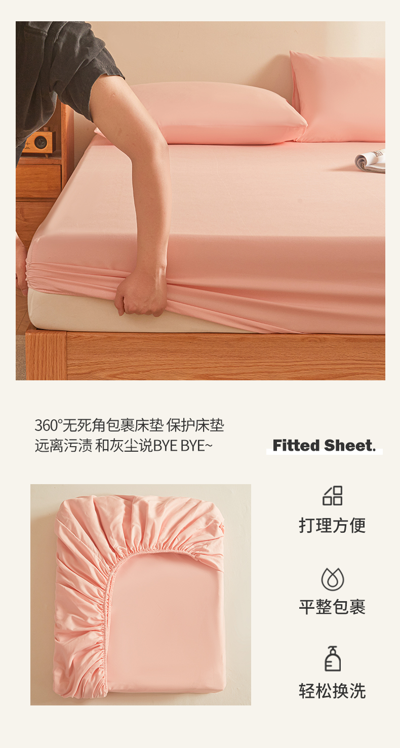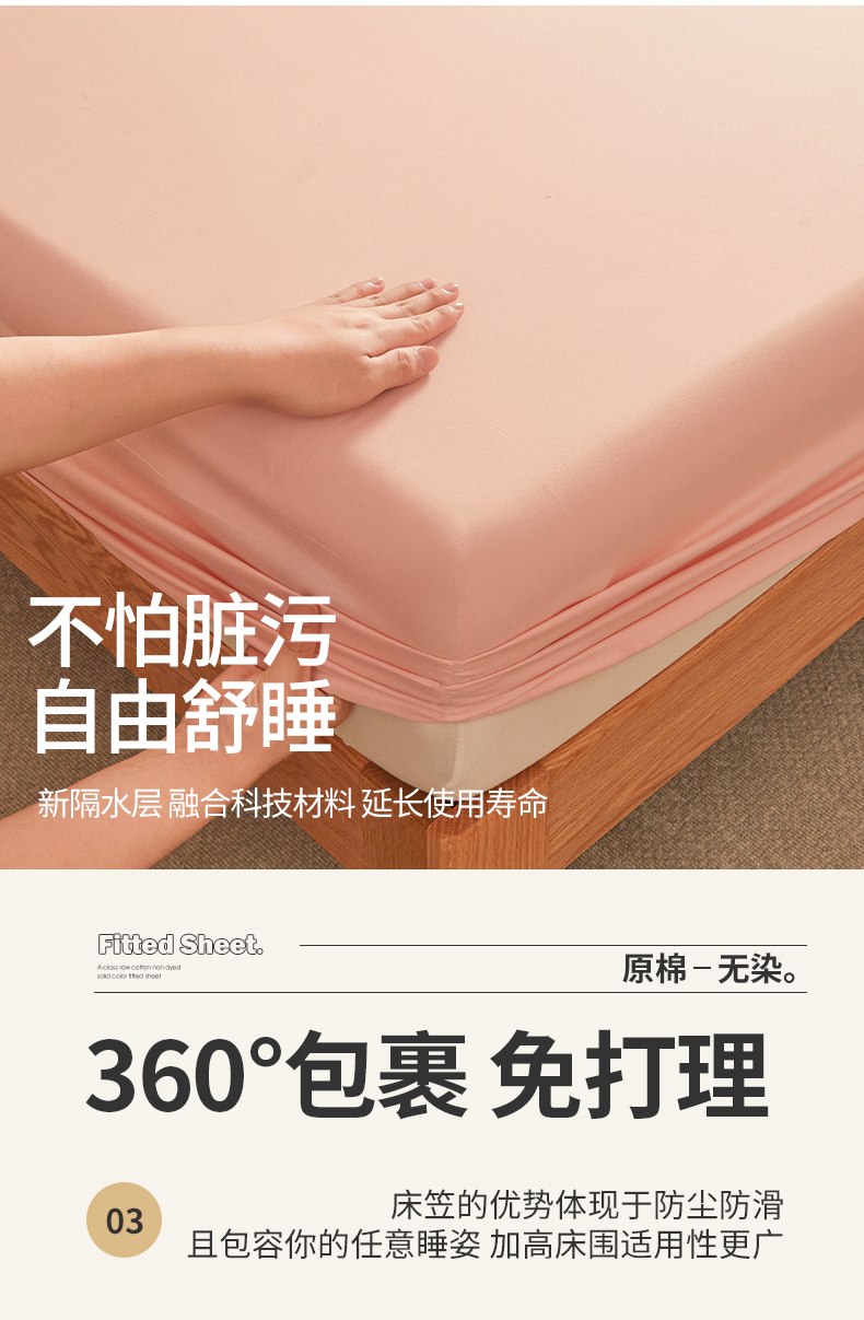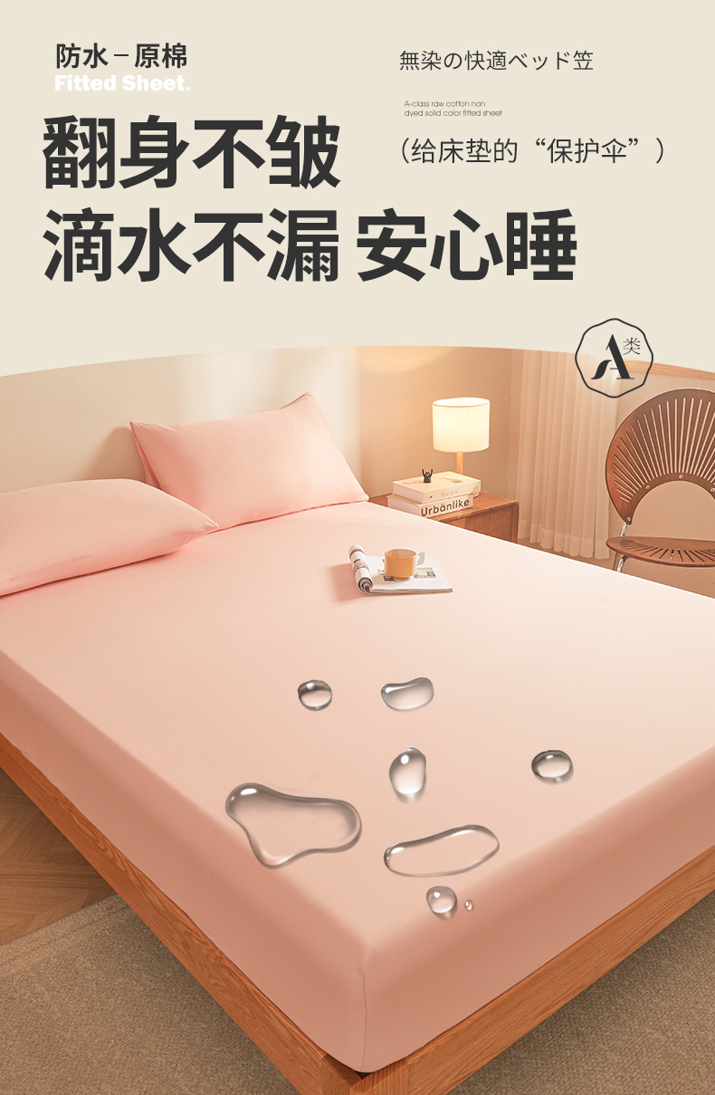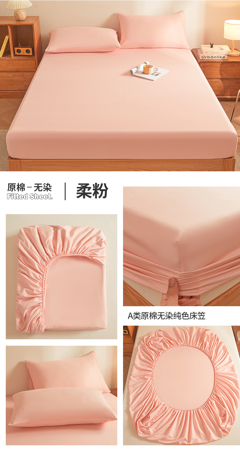 商品名称:伊人坊 2024新款原棉单层纯色床笠防水 柔粉