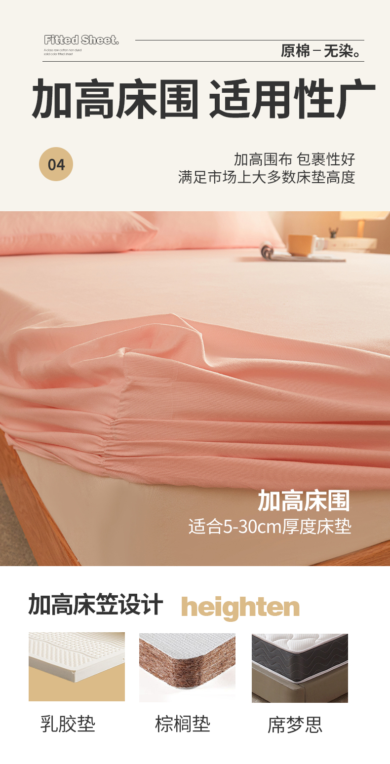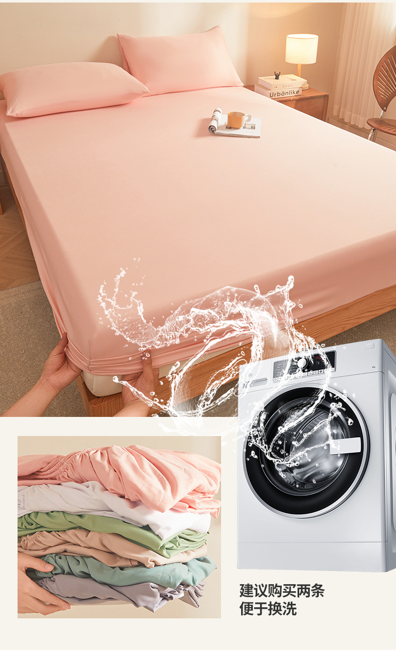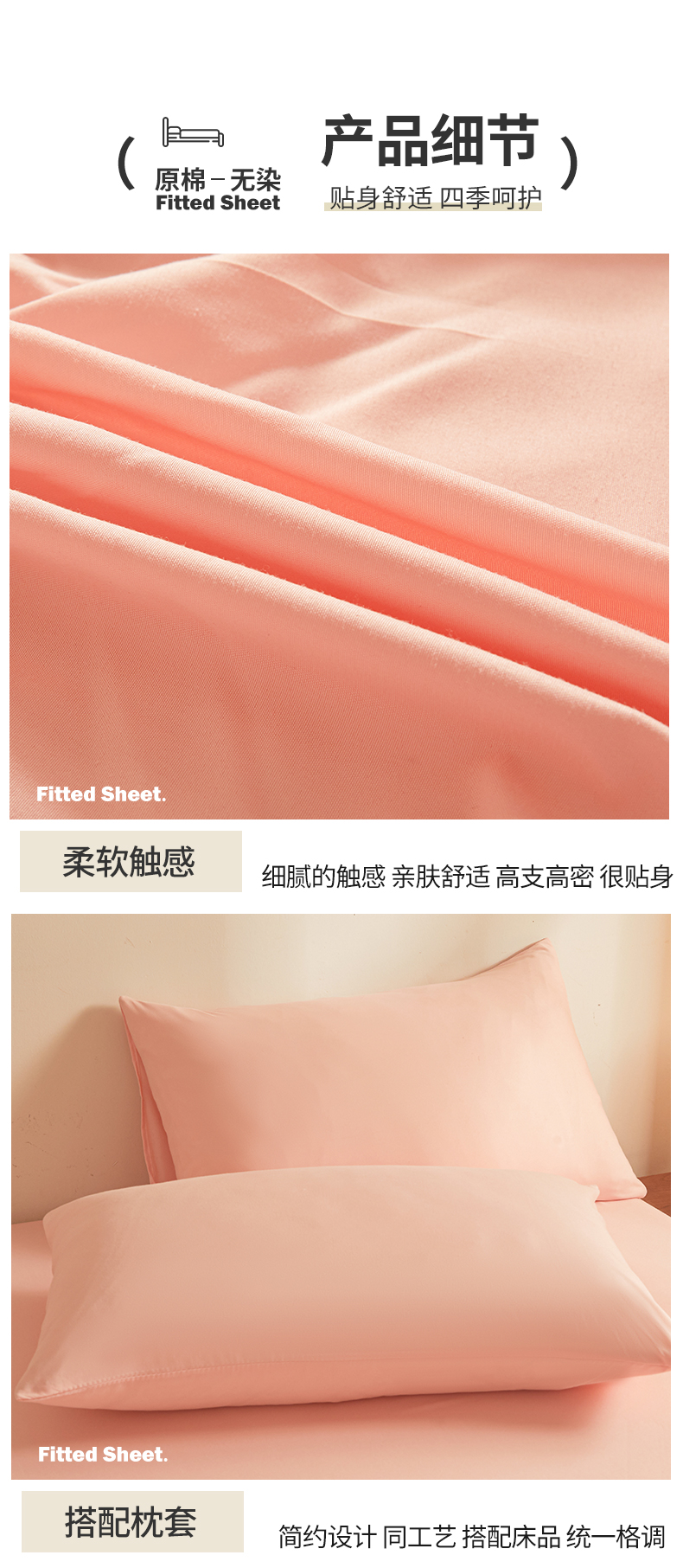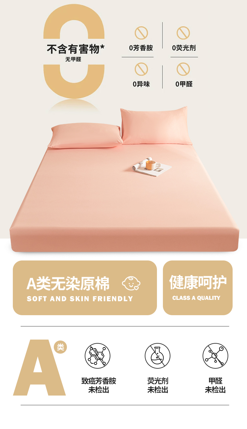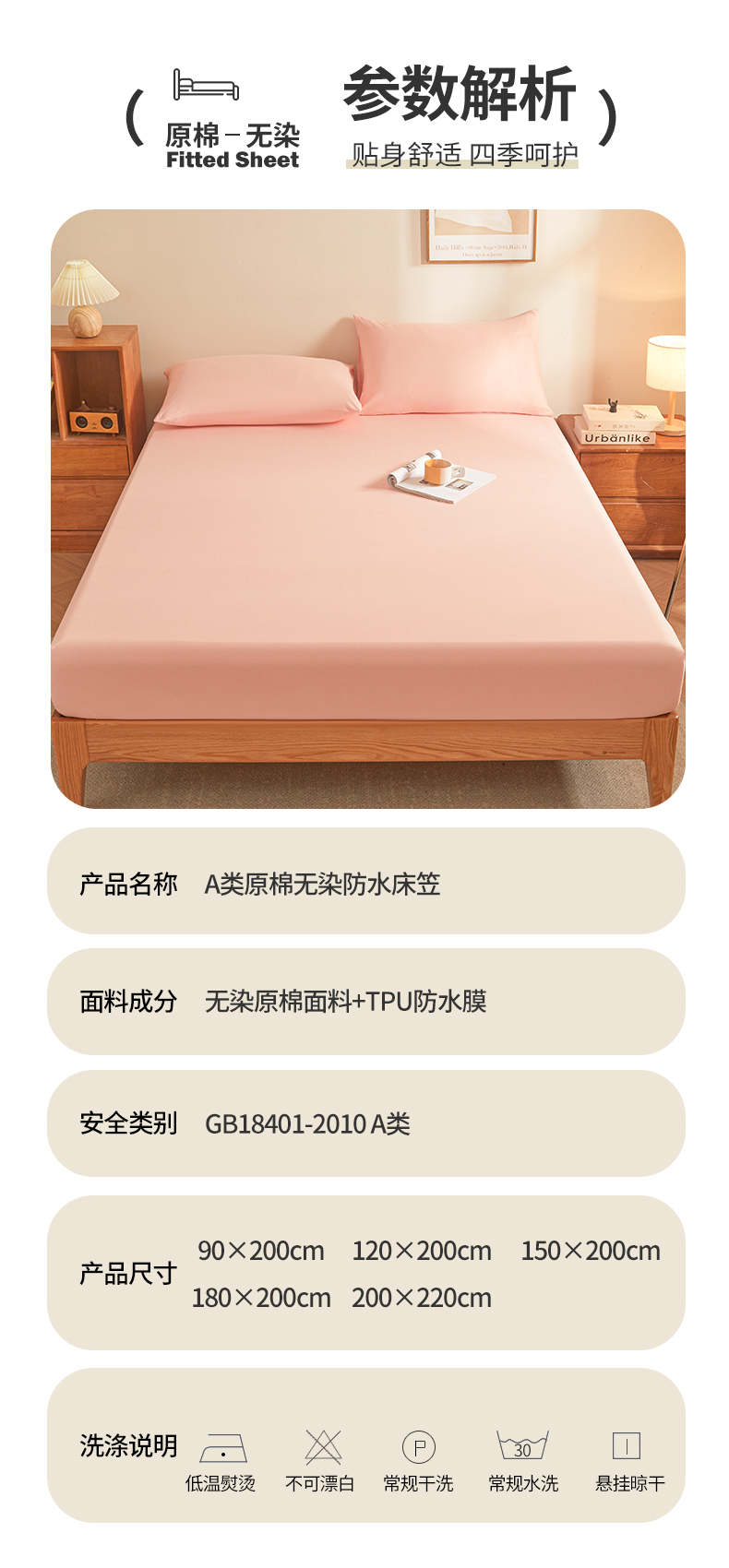商品名称:伊人坊 2024新款原棉单层纯色床笠防水 柔粉