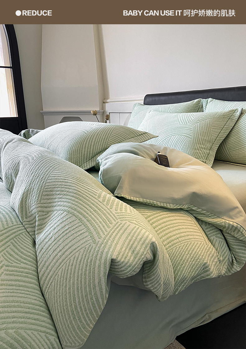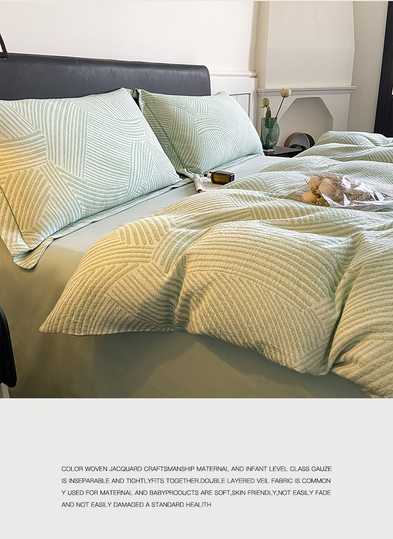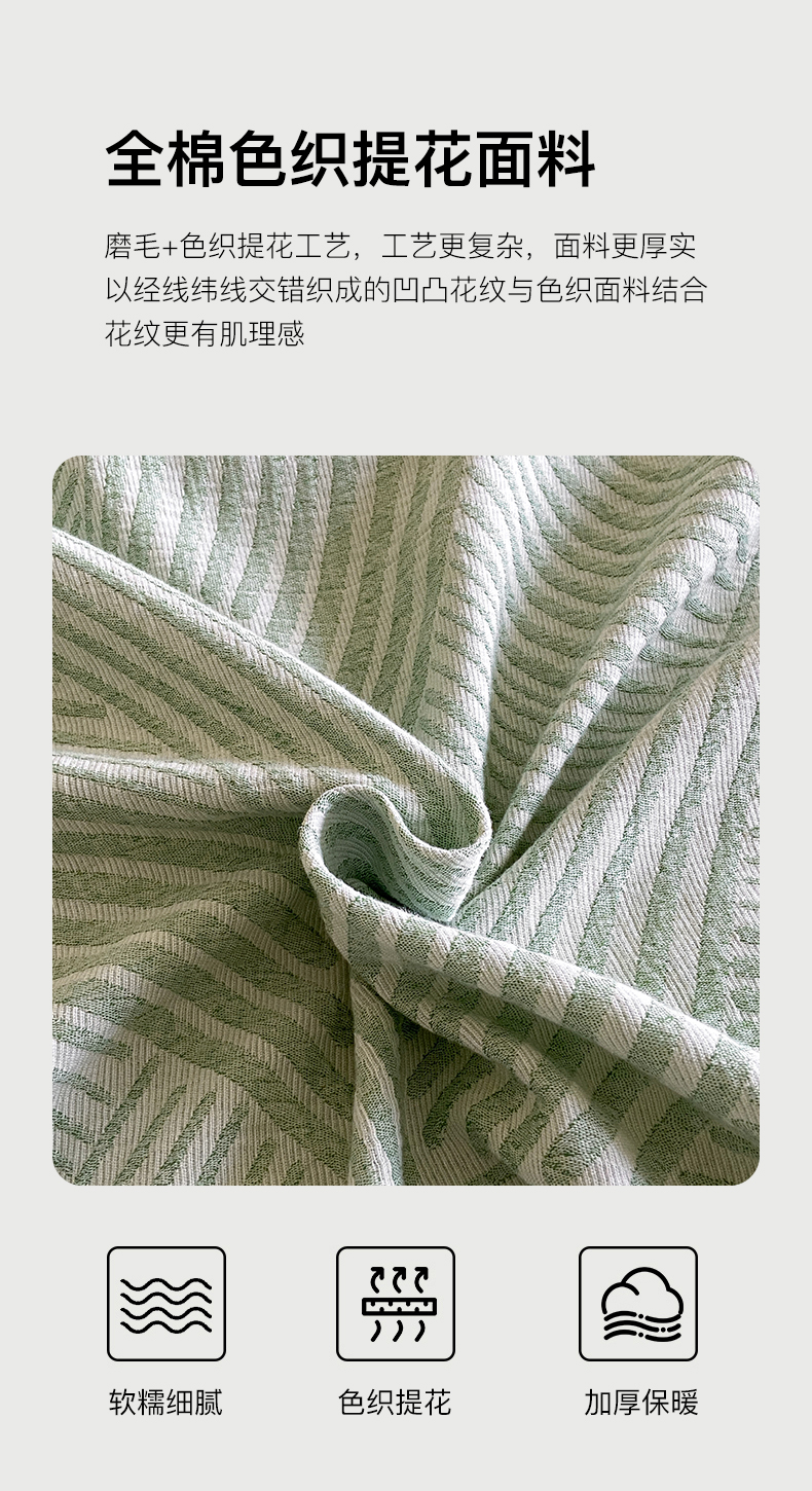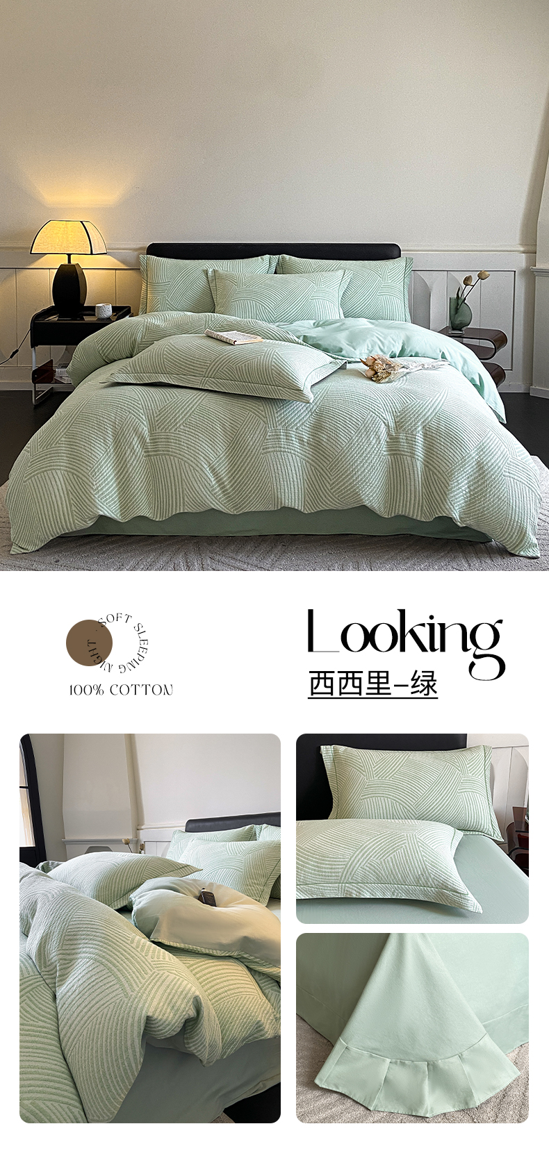商品名称:格里芬家纺 2025新款三层纱全棉加厚磨毛色织大提花四件套 西西里-绿