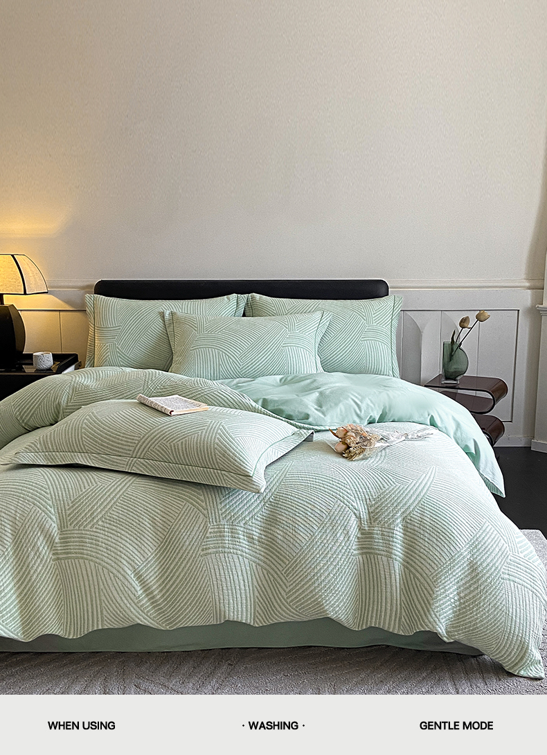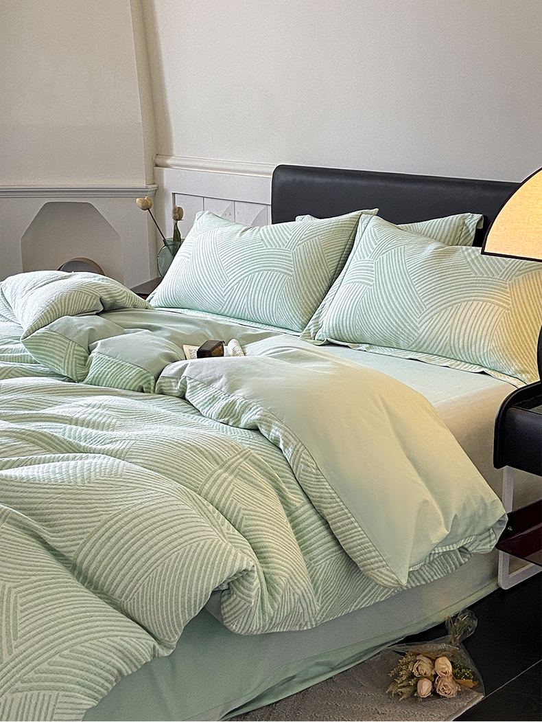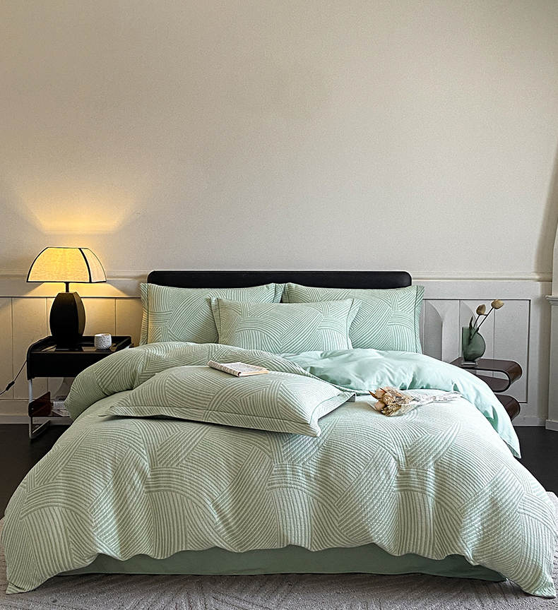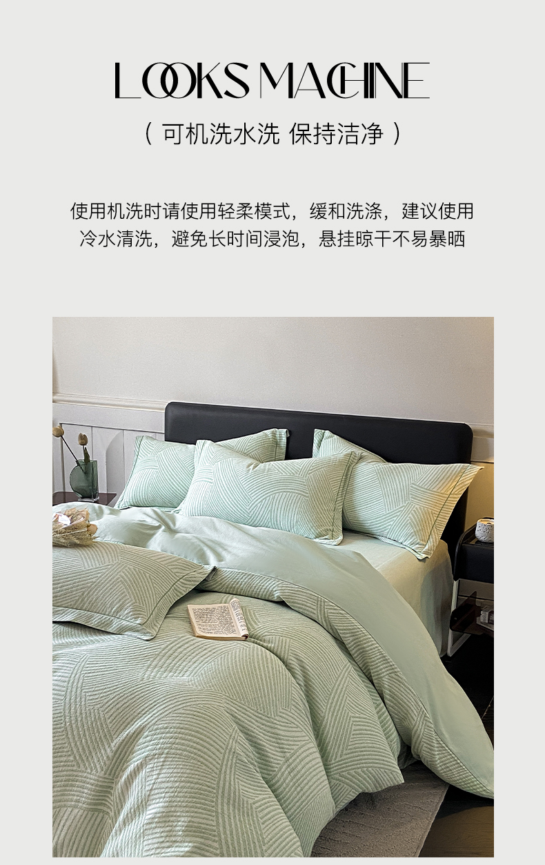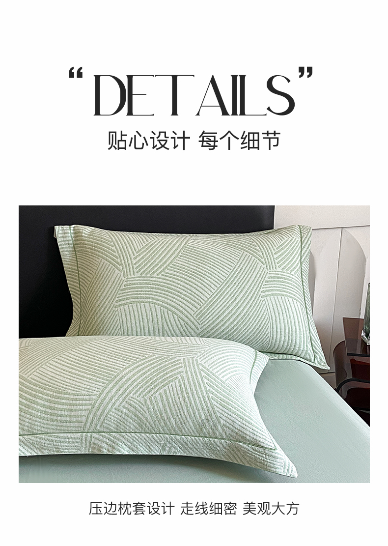 商品名称:格里芬家纺 2025新款三层纱全棉加厚磨毛色织大提花四件套 西西里-绿