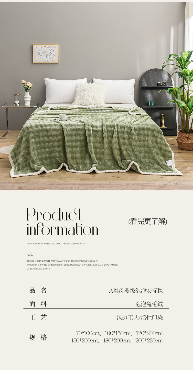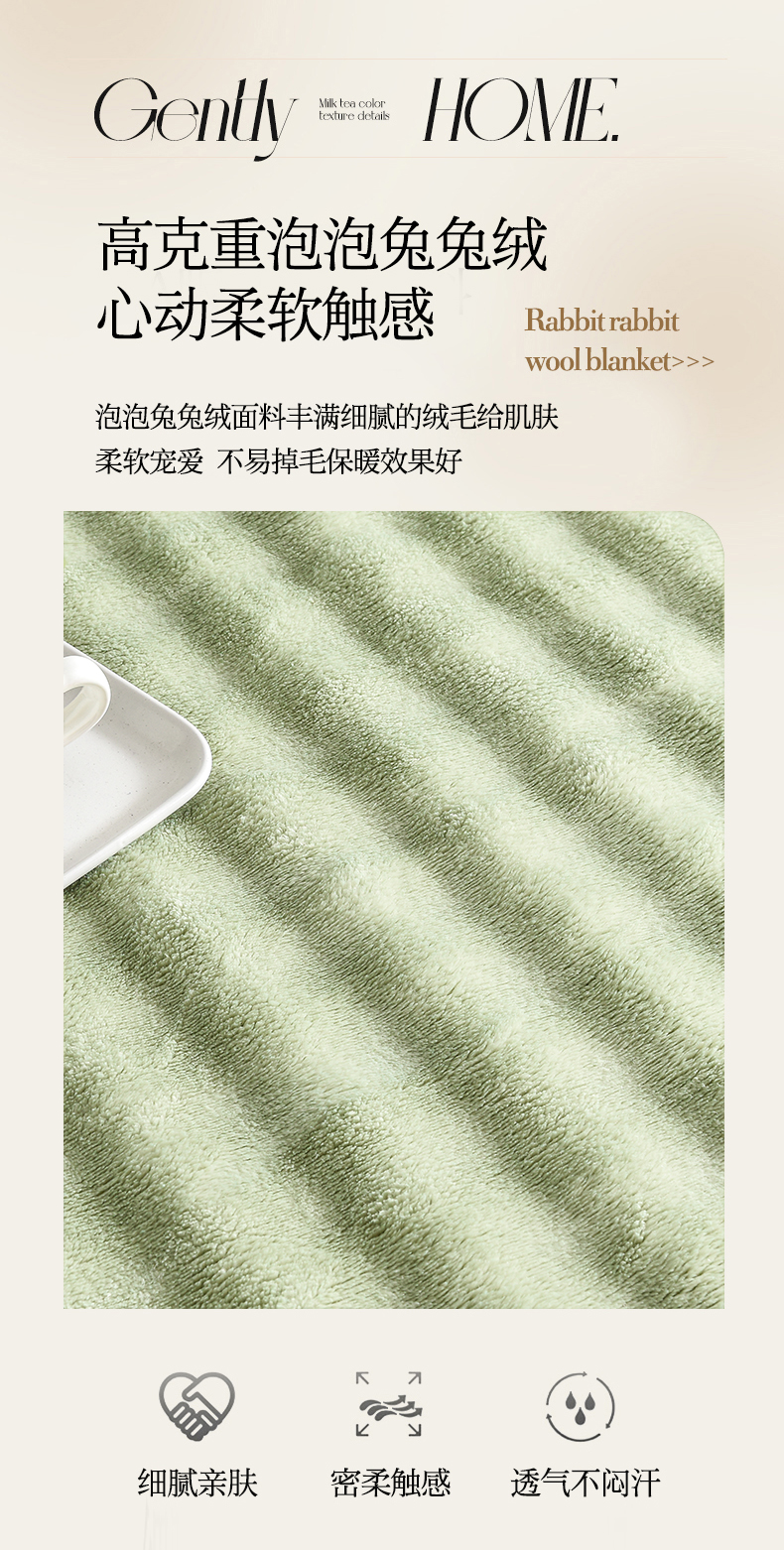 商品名称:爱她美家纺 2024新款兔毛泡泡毯多功能毯子 草绿