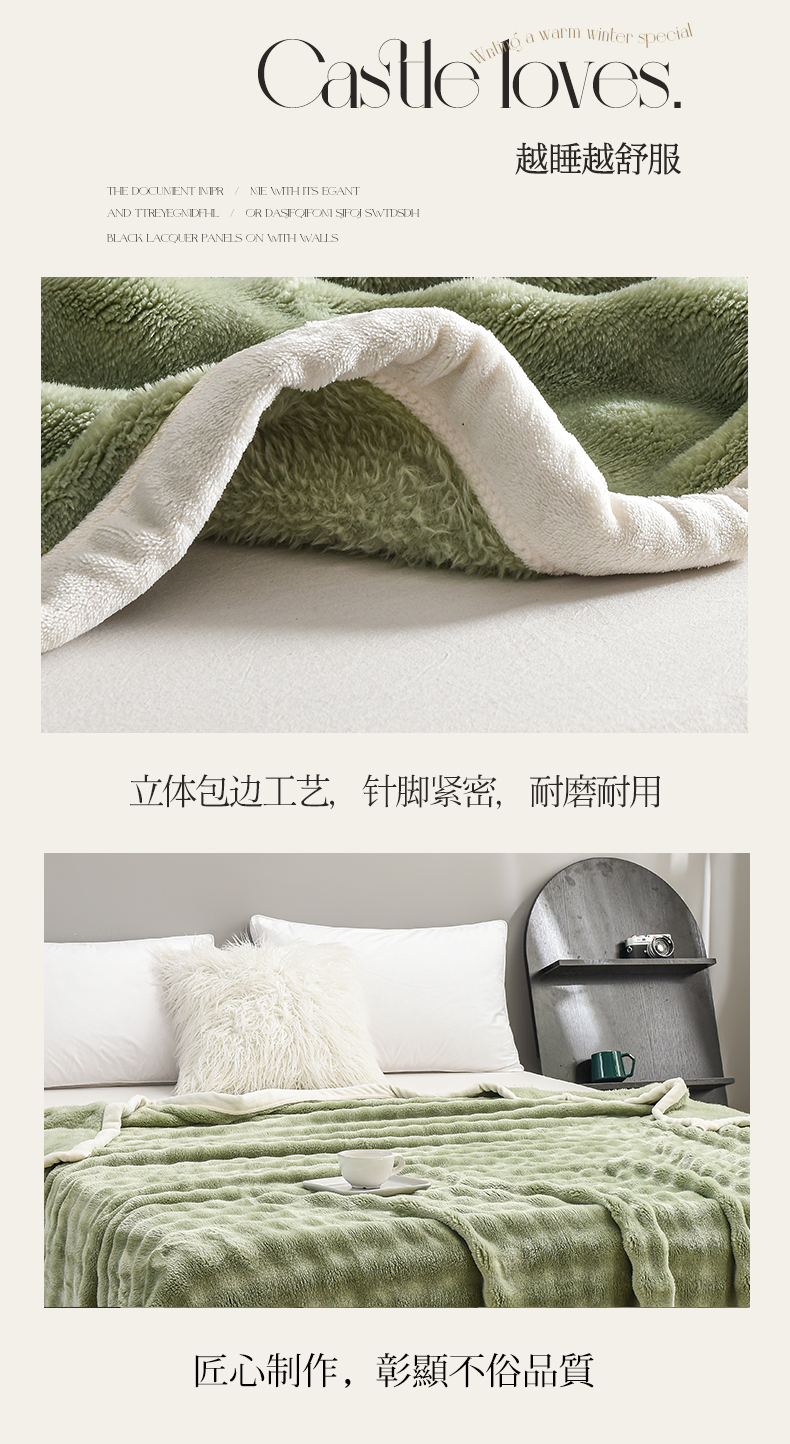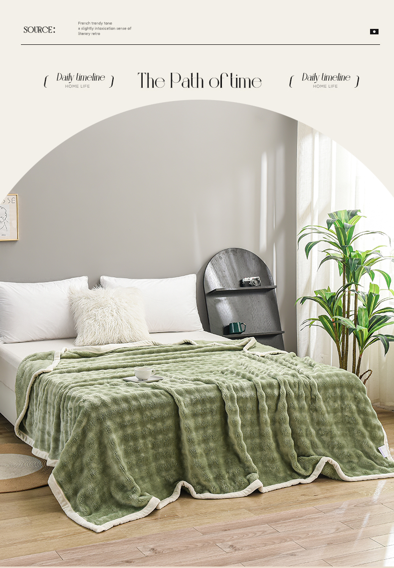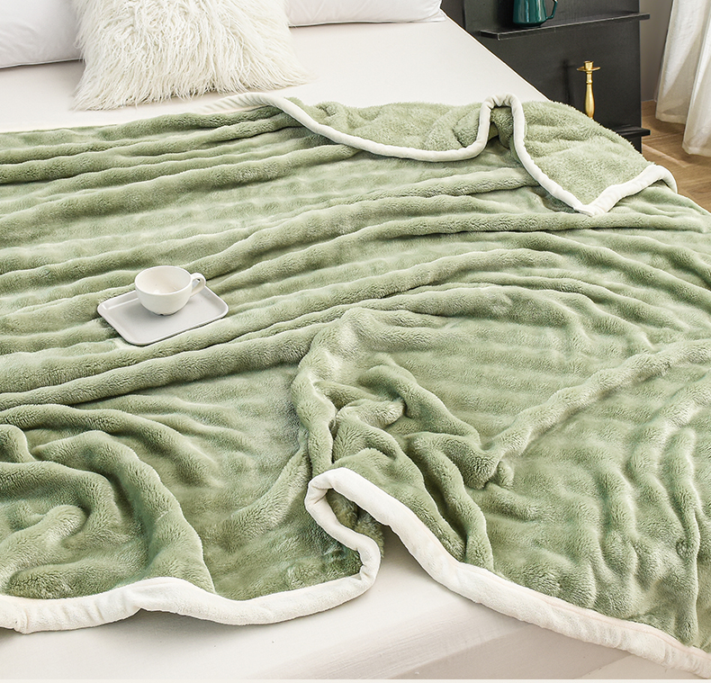 爱她美家纺 2024新款兔毛泡泡毯多功能毯子 草绿