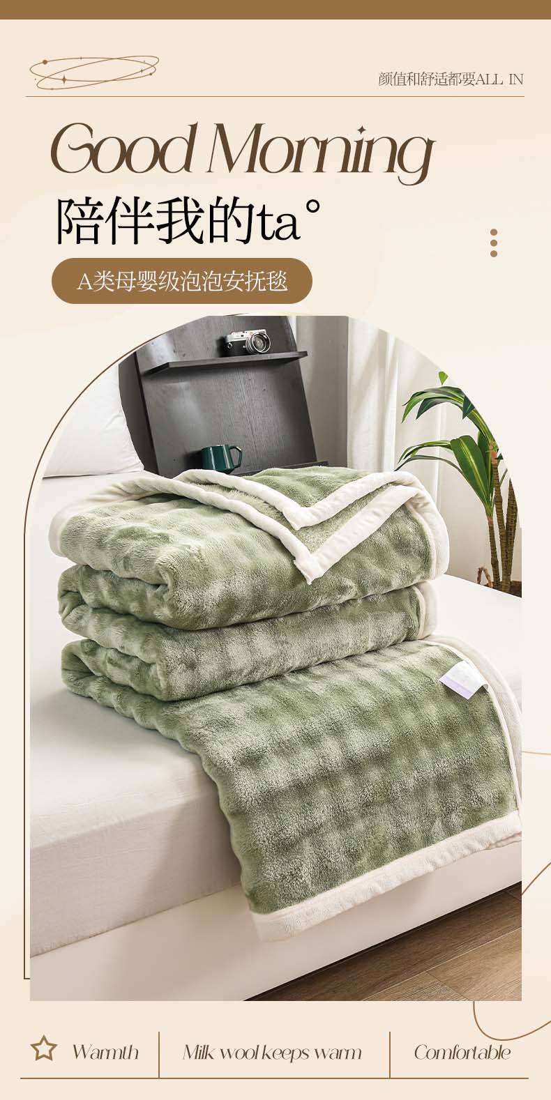 (总)爱她美家纺 2024新款兔毛泡泡毯多功能毯子,草绿,粉色,奶白,浅灰,天蓝,驼色,紫色