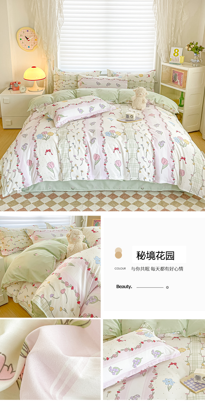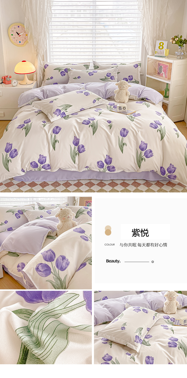 (总)楠沐家纺 2025年新款无印风学生印花四件套芦荟棉水洗棉,彩色波点,觅遇,晴空蓝格,亚麻灰格,烟雾灰格,英伦蓝格