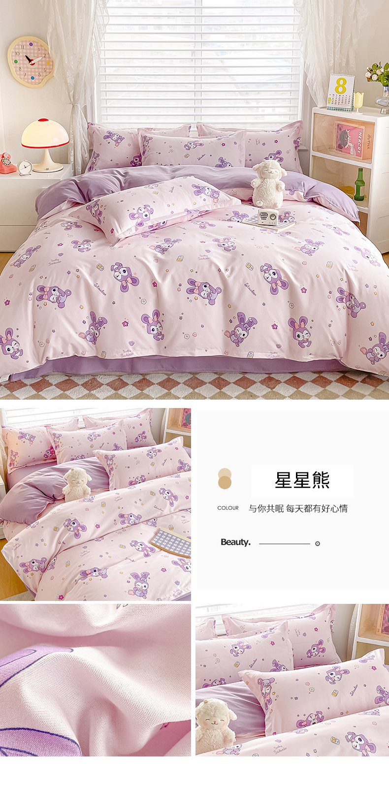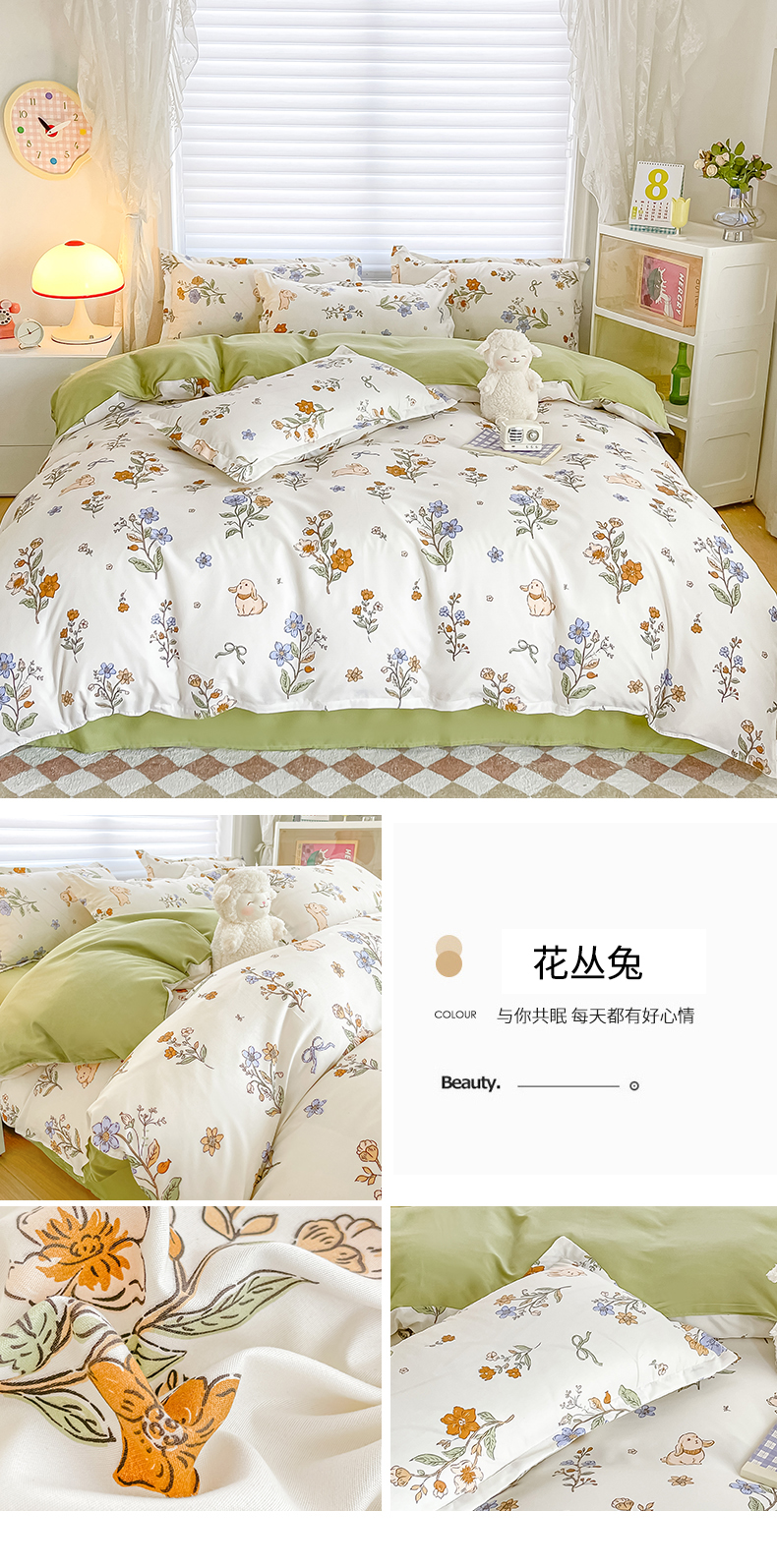 (总)楠沐家纺 2025新款芦荟棉印花学生宿舍上下铺四件套三件套,冰淇淋格,春田花卉,蝶舞仙子,哆咪熊,果绿浅驼,果绿耀夜黑,花丛兔,滑板小熊,猫咪小姐,秘境花园,奶粉色泡泡绿,南得遇见,派对熊,山茶花,水墨花,田园小兔,心动兔,星星兔,幸运心,炫彩蓝格,血牙深灰,紫色浪漫,紫悦