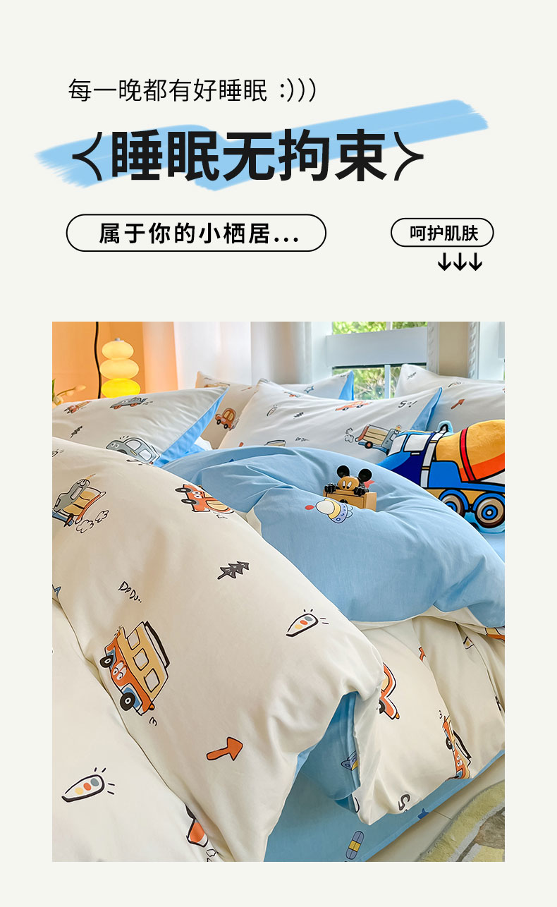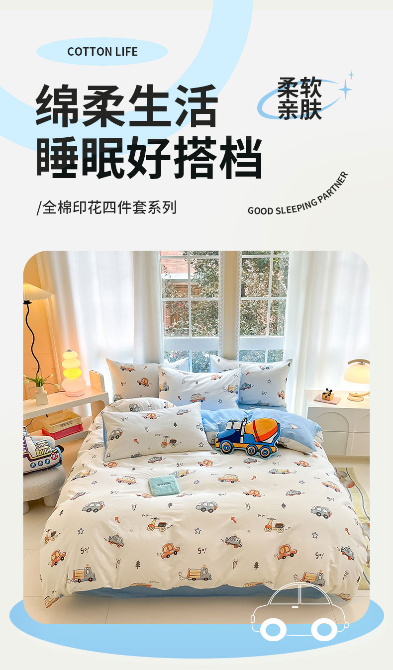 博雅 2024新款宇航员系列全棉四件套(专版花型) 小汽车
