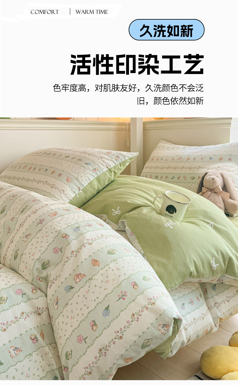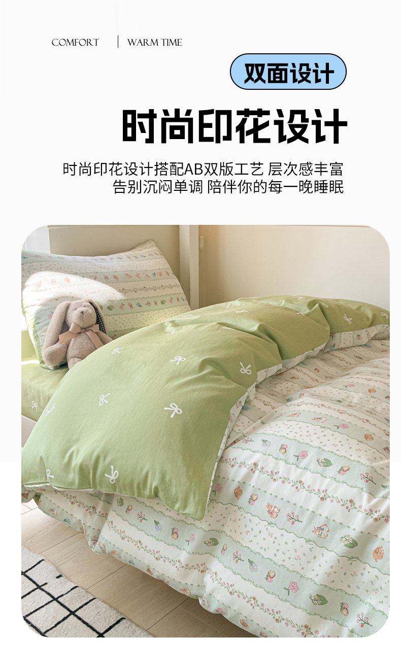 (总)吉象家纺 2025新款12868全棉印花单被套,蓝色泡芙狗,蘑菇小兔,奶油甜心熊,碎花狗狗,碎花小兔,爪爪会客厅