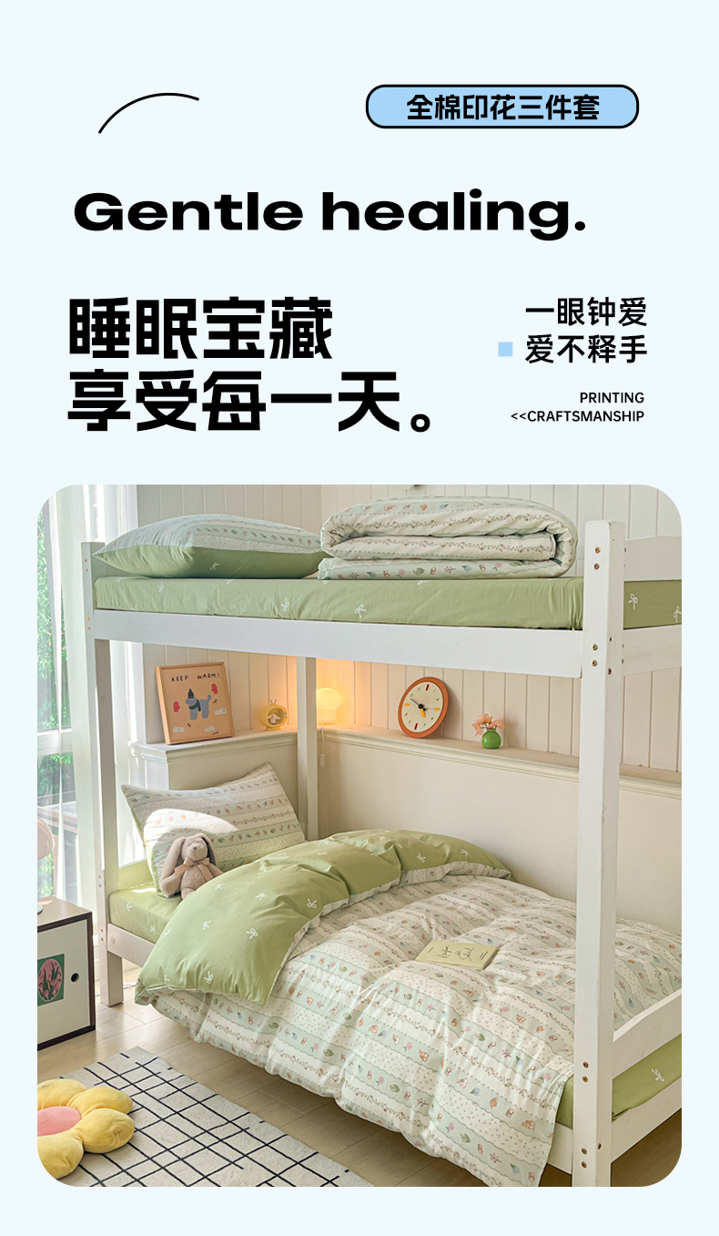 (总)吉象 2025新款全棉印花学生三件套学生宿舍三件套,霸王龙,马里奥,蜜桃兔,太空旅行,悉尼豆沙,悉尼绿